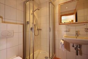 Gemütliches Einbauzimmer mit Dusche/WC, Safe, Haarföhn und Sat-TV. Teilweise verfügen unserer Zimmer über einen Balkon. In besonders ruhiger Lage. Größe ca. 15 m²