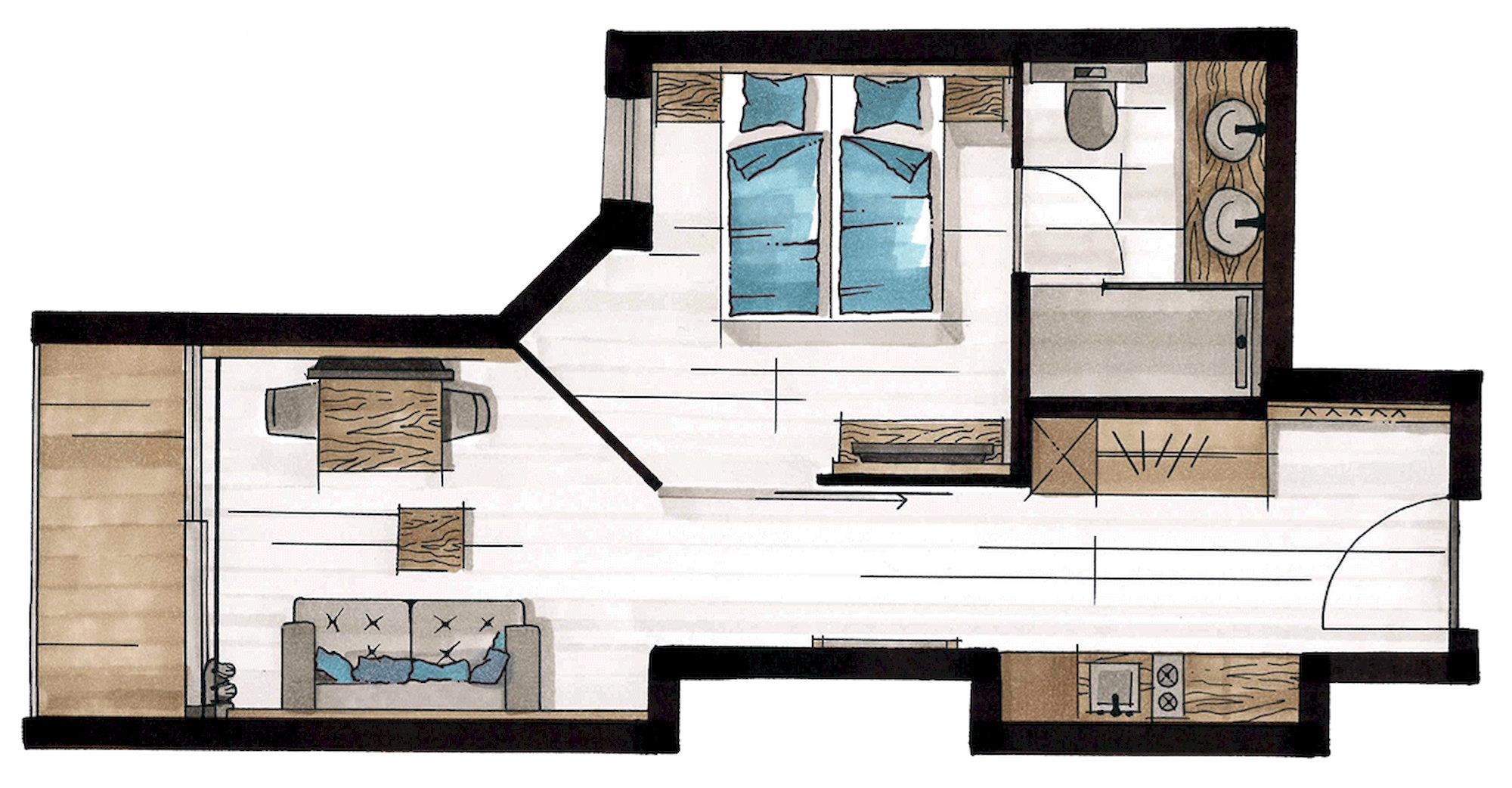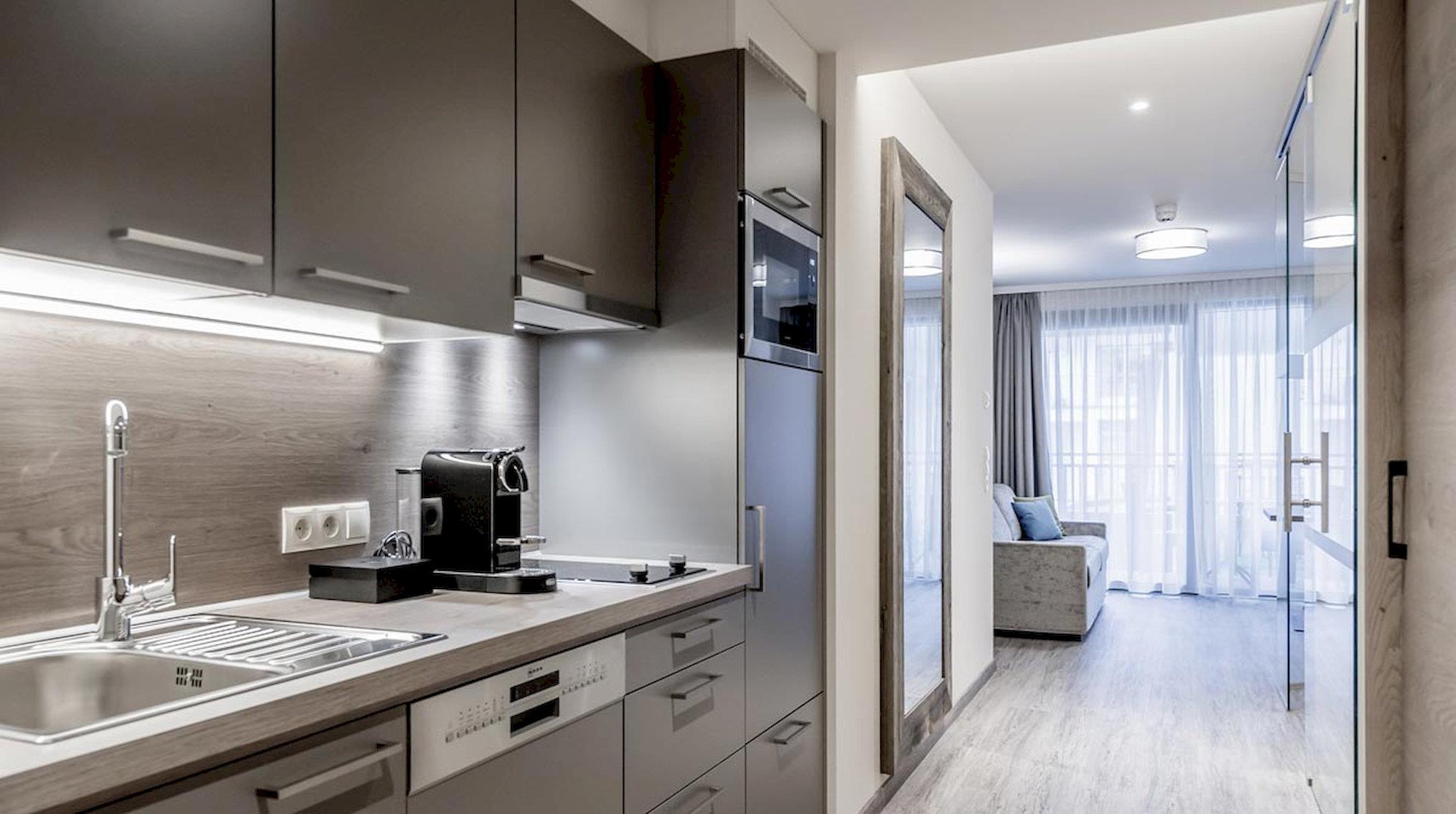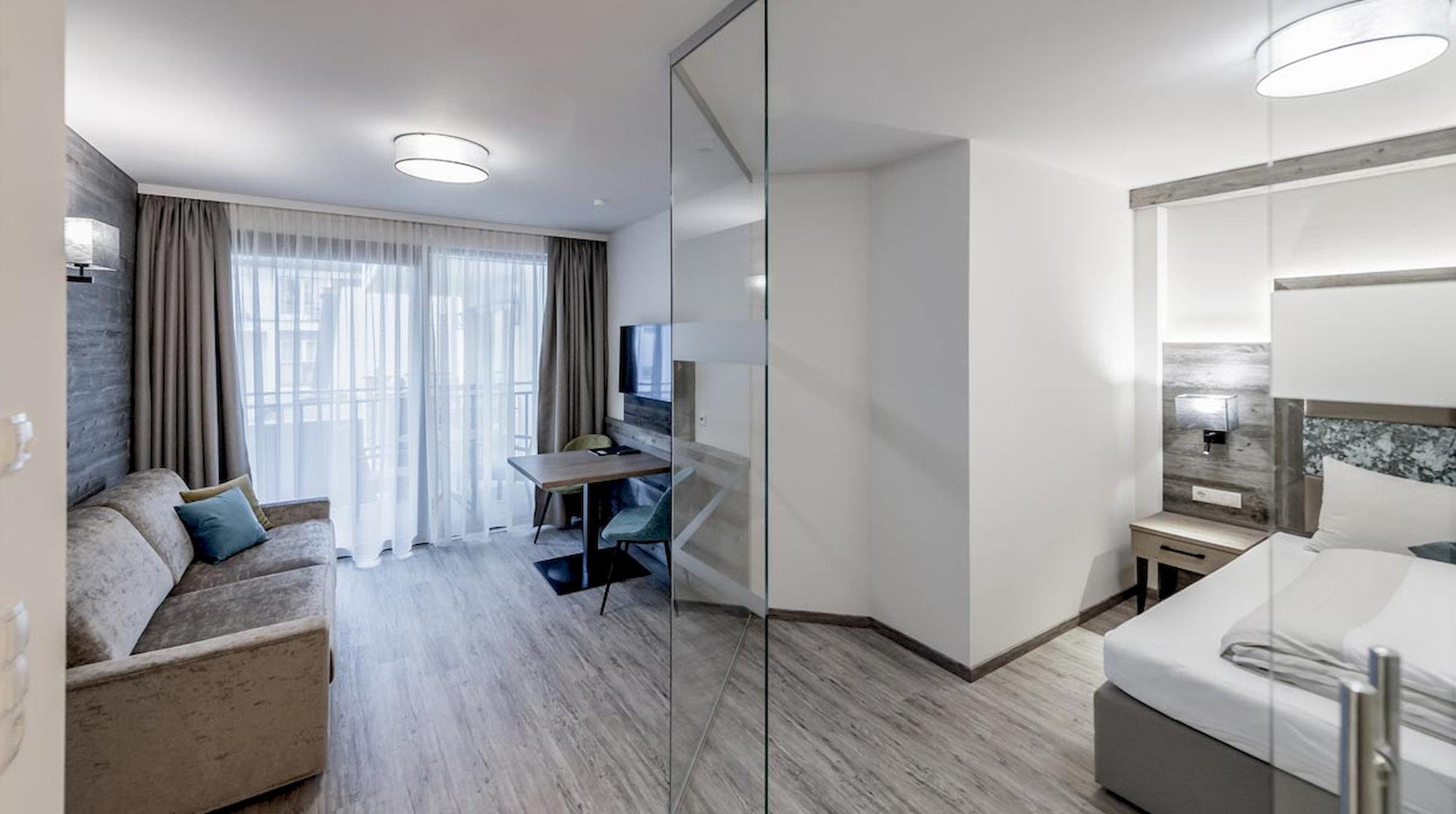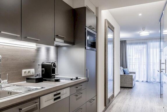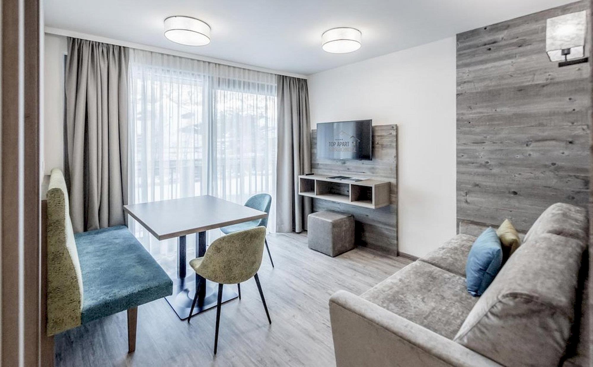ALPINE APART (ca. 40 m²): Eichenholz, feinste Stoffe & naturnahe Materialien aus der Region sorgen für eine harmonische Gemütlichkeit. Spüren Sie die Behaglichkeit und fühlen Sie sich im ALPINE Apart wie Zuhause. Wohnraum mit Couch & Essecke, Kochnische (2-Platten-Cerankochfeld, Kühlschrank, Geschirrspülmaschine, Kaffeemaschine...), Doppelzimmer, Balkon, Garderobe, Badezimmer mit Dusche/WC.