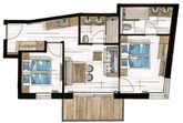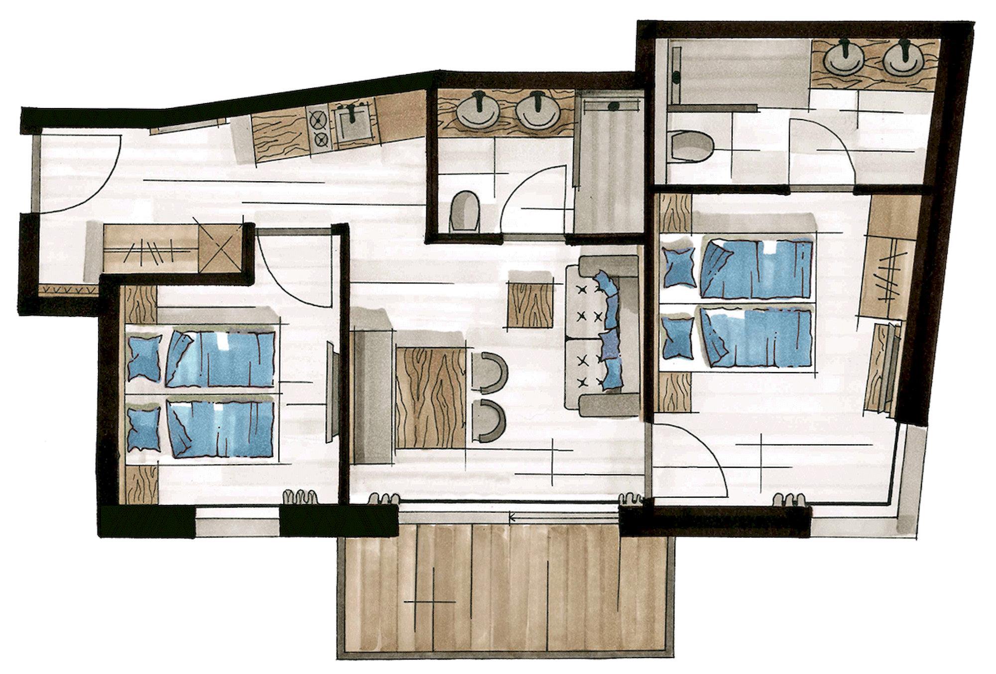 ALPINE APART (ca. 55 m²): Eichenholz, feinste Stoffe & naturnahe Materialien aus der Region sorgen für eine harmonische Gemütlichkeit. Spüren Sie die Behaglichkeit und fühlen Sie sich im ALPINE Apart wie Zuhause. Wohnraum mit Couch & Essecke, Kochnische (2-Platten-Cerankochfeld, Kühlschrank, Geschirrspülmaschine, Kaffeemaschine...), 2 Doppelzimmer, Balkon, Garderobe, 2 Badezimmer mit Dusche/WC.