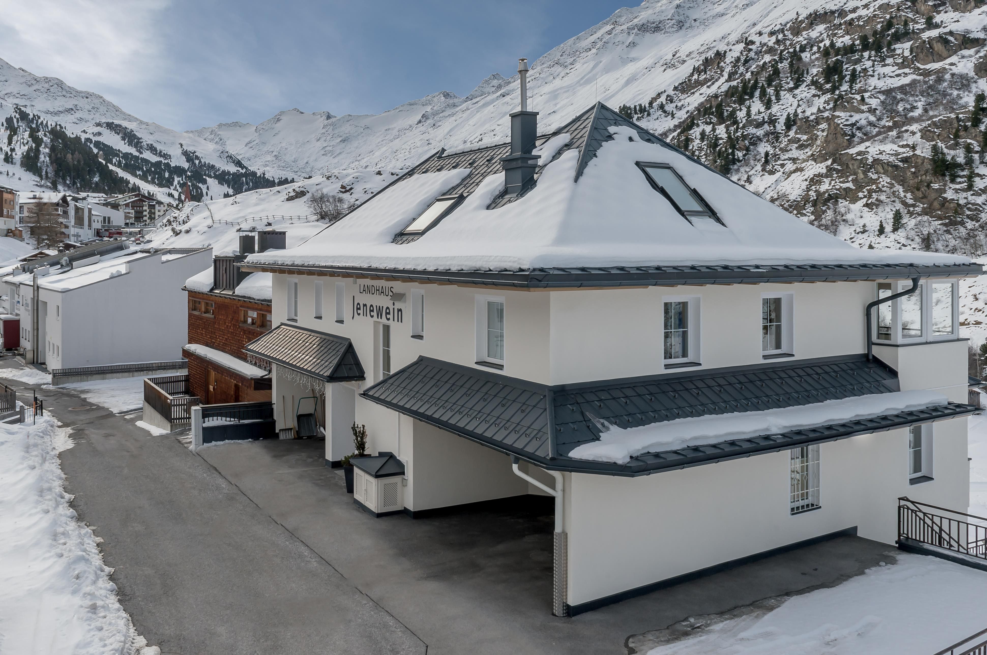 Bei Ihrer Ankunft sehen Sie nur die Rückseite während sich die Schokoladenseite mit den Balkonen auf die ruhige Sonnenseite erstreckt. Von dieser Seite aus umfasst das Haus mehrerer Etagen - allesamt mit ungestörtem Blick auf die herrlichen Berge. Unser Haus ist am Ortsanfang in freier Hanglage gelegen. Man braucht ca. 5-7 Minuten ins Zentrum bzw. zum Hotel Jenewein. In unserem Landhaus Jenewein befinden sich Appartements für 2, 4 und 6 Personen, ein Lift und eine Saunalandschaft.
