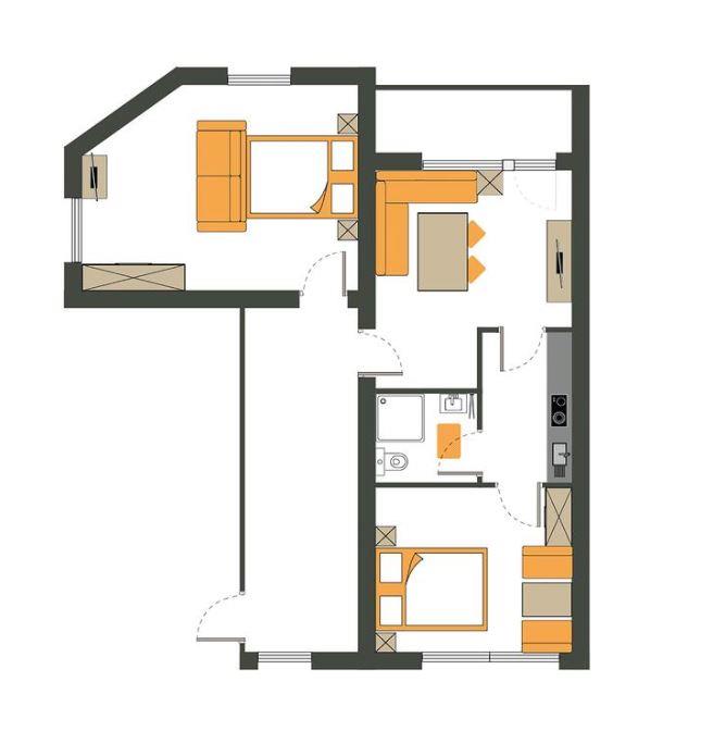 Ihr Appartement mit eigenem Hauseingang und ca. 65 m² verfügt über: