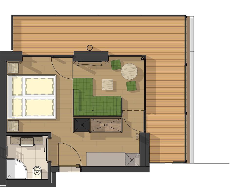 Man nehme 27 m², ein Doppelzimmer, eine Wohnküche mit gemütlicher Sitzecke und eine kuschelige Couch und schon hat man ein Reich für sich ganze alleine. Gemütliche Wohnküche mit Sitzecke und Couch, Geschirrspüler, Kühlschrank, Kaffeemaschine, Wasserkocher, Mikrowelle, Badezimmer mit Dusche, WC, Föhn, Handtücher, Bademäntel, Schminkspiegel und Eckterrasse.
