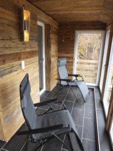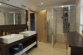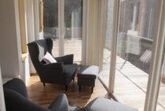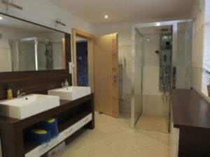 Im Obergeschoss wunderbarer Altholz-Wintergarten zum Relaxen, 3 Schlafzimmer mit 3 Doppelbetten, einem Stockbett und einem Gitterbett, Sauna und ein zweites großes Badezimmer mit Dusche, Badewanne mit Whirlpool und WC