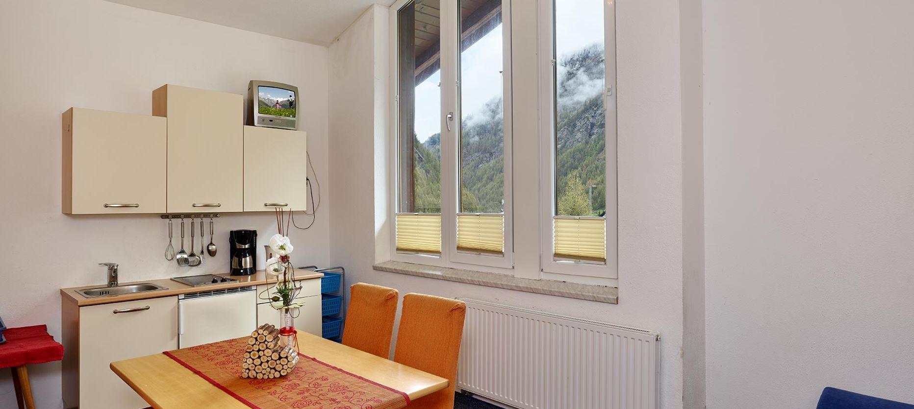 Appartement mit 1 Doppelzimmer Kabel-TV, Badezimmer mit Dusche/WC, Wohnraum mit Essbereich, ausziehbarem Sofa (Schlafmöglichkeit für 2 weitere Personen) und voll ausgestatteter Küche.