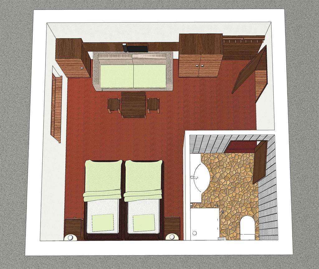moderne Doppelzimmer (ca. 22 m²) für 2-3 Personen mit Badezimmer (Dusche/WC und Haarföhn), Telefon, Radio, Kabel-TV (Flachbildschirm), Zimmersafe