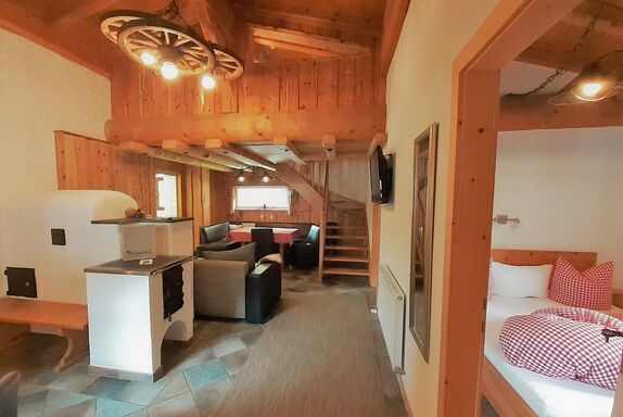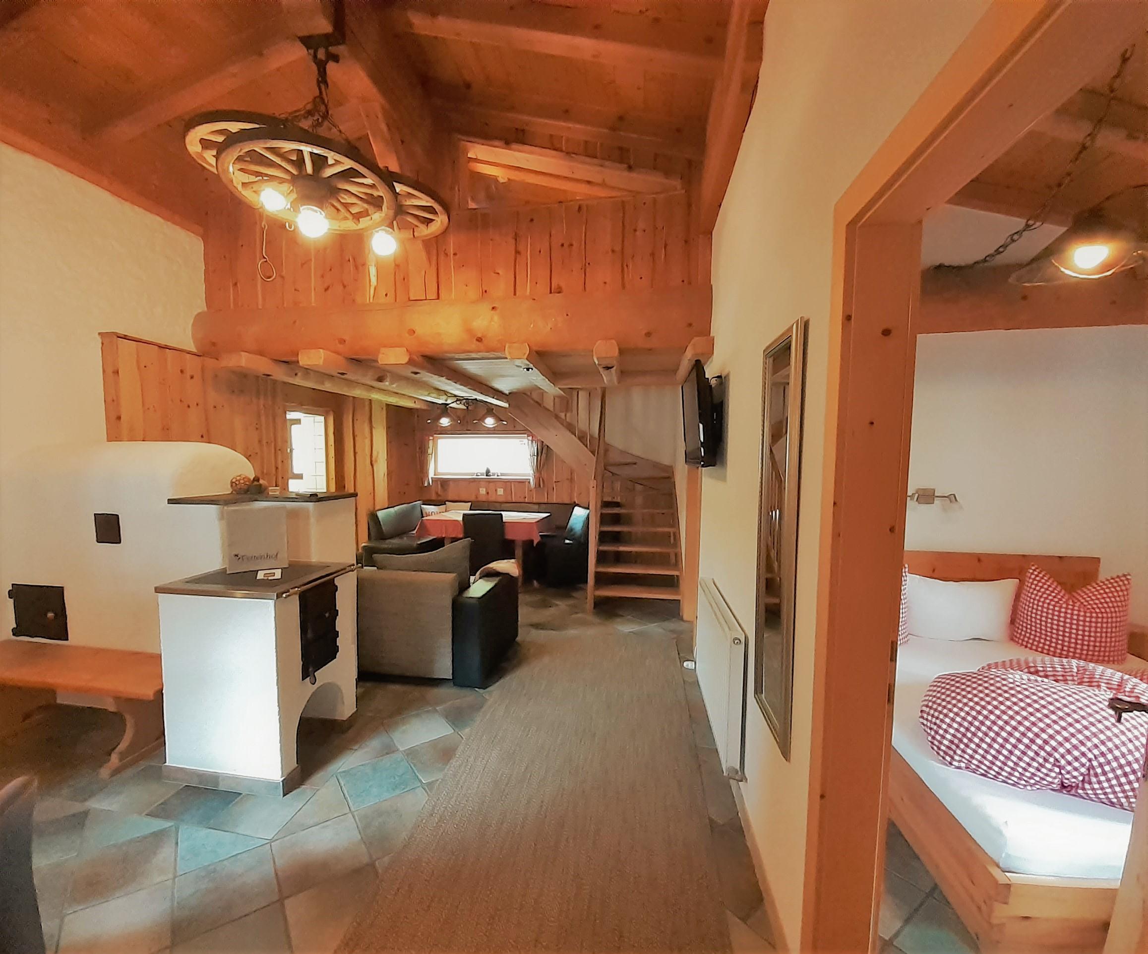 Unser Ferienhaus aus Zirbenholz bietet Platz für 2-7 Personen auf ca. 80 m². Es besteht aus 2 Doppelzimmer (160x200), 1 Galerie mit einem französischem Bett und zusätzlichem Einzelbett, Badezimmer mit Walk-in Dusche und Föhn, separates WC, vollausgestattete Küche, Wohn- Esszimmer, Kachelofen (elektrisch), TV, Safe, Massageroller und 2 Terrassen mit wunderbarem Ausblick für gesellige Stunden. Waschmaschine und Bügeleinrichtung (im Haupthaus). Keine Haustiere gestattet!
