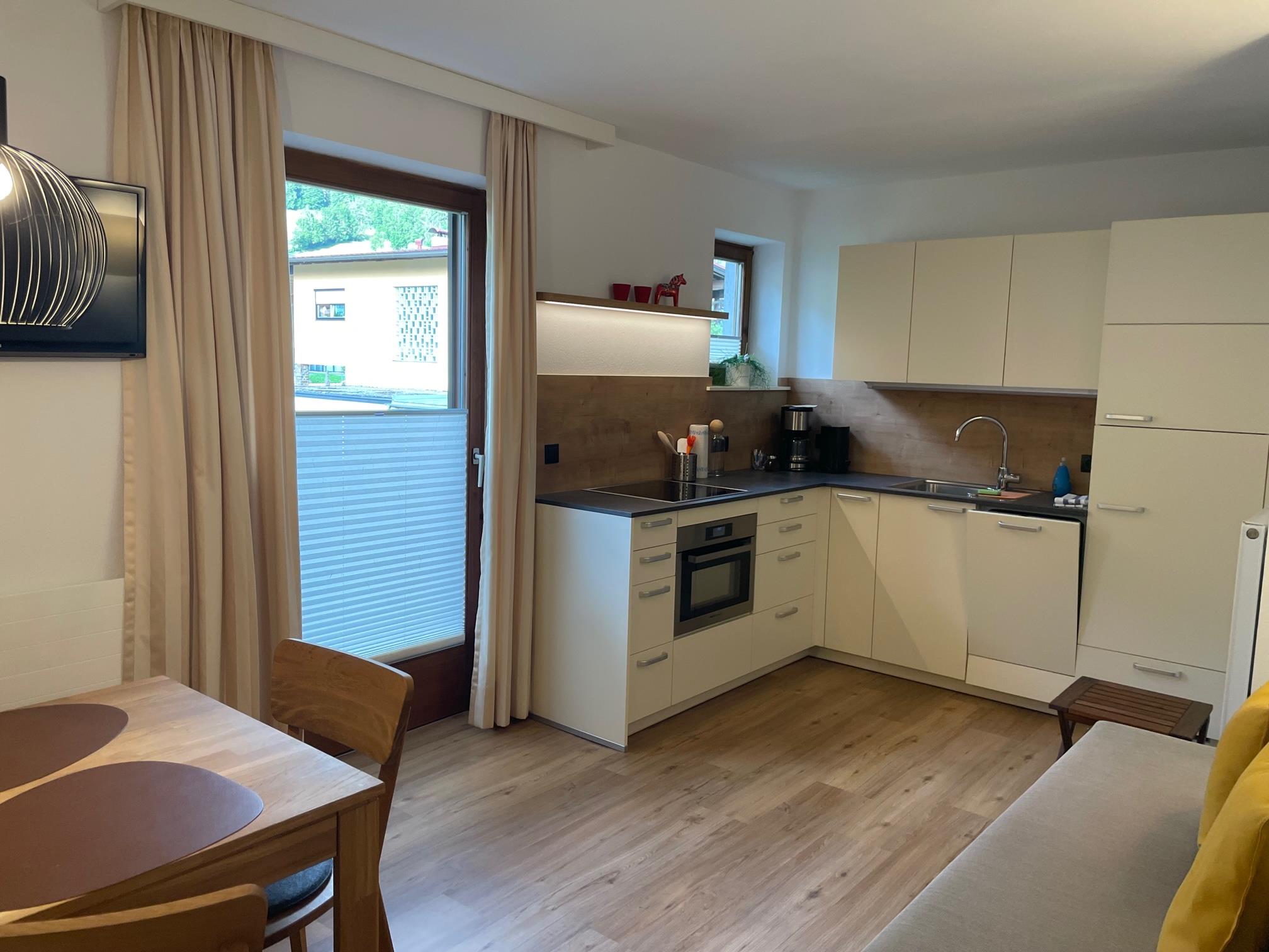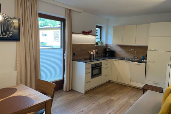 Unsere gemütlichen Appartements II + III mit jeweils ca. 42 m² bestehen aus: 1 Doppelzimmer mit Sat-TV; komfortable Wohnküche mit komplett ausgestatteter Küchenzeile (Spülmaschine, Cerankochfeld, Kühlschrank, Kaffeemaschine uvm.) Wohn- und Essbereich und Sat-TV, Schlafsofa für 3. Person; 1 Badezimmer mit Dusche oder Badewanne und WC; großer möblierter Balkon