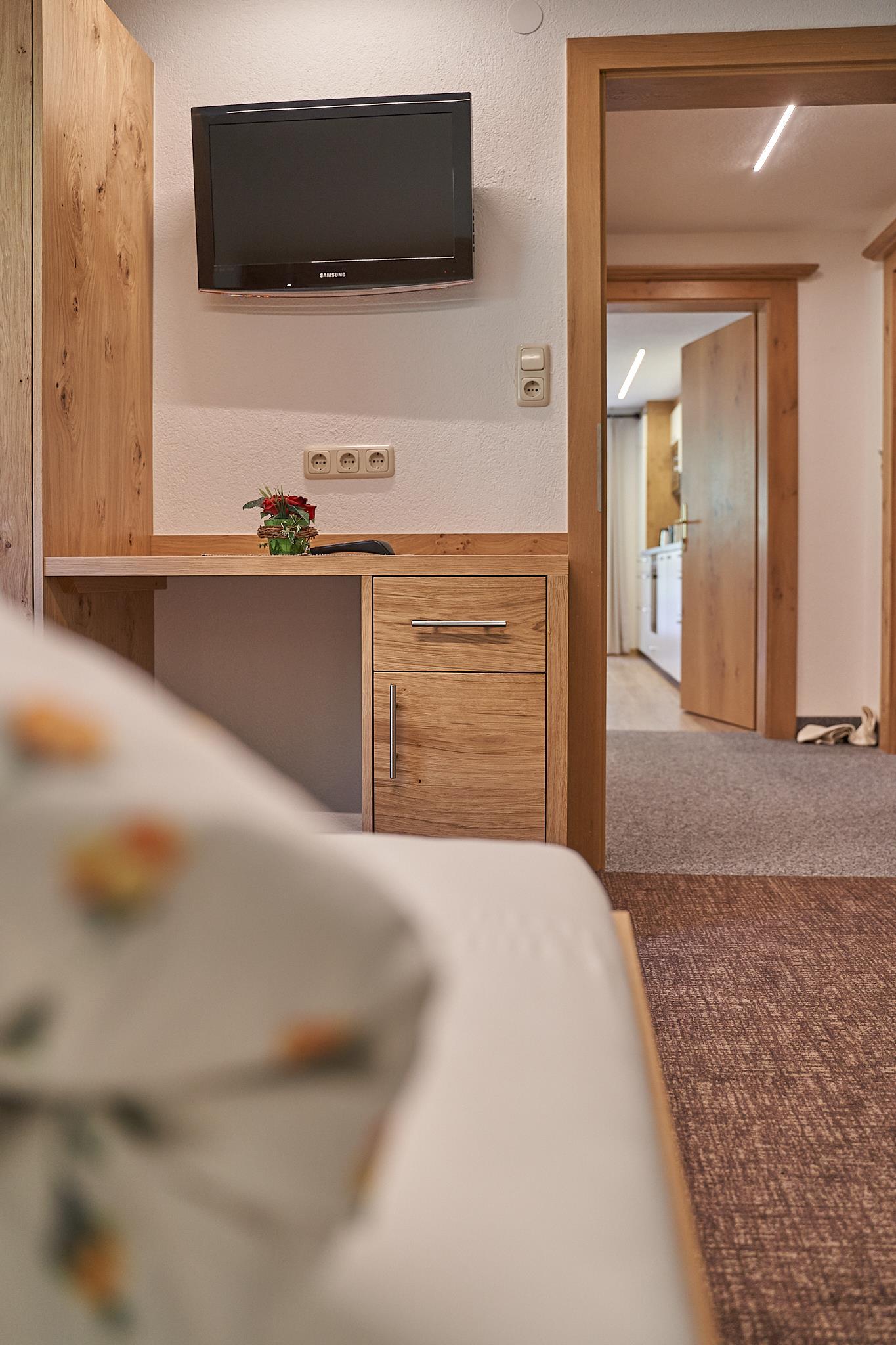 Appartement Top 3 im 1. Stock mit 1 Schlafzimmern (Doppelbett und Einzelbett), 1 vollausgestattete Wohnküche mit Essbereich ,Ceran-Kochfeld, Geschirrspüler, Kühlschrank, Mikrowelle uvm., 1 x Badezimmer mit Dusche/WC mit Haaföhn, Kabel-TV, Telefon, Terrasse. Größe: ca. 50 m².