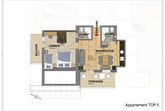 Appartement Top 5 im 2. Stock mit 1 Schlafzimmern (Doppelbett und Schlafsofa für 1 Person), 1 vollausgestattete Wohnküche mit Essbereich, Schlafsofa für 2 Personen, Ceran-Kochfeld, Geschirrspüler, Kühlschrank, Mikrowelle uvm., 2 x Badezimmer mit Dusche/WC und Haaföhn, Kabel-TV, Telefon, Balkon. Größe: ca. 40 m².