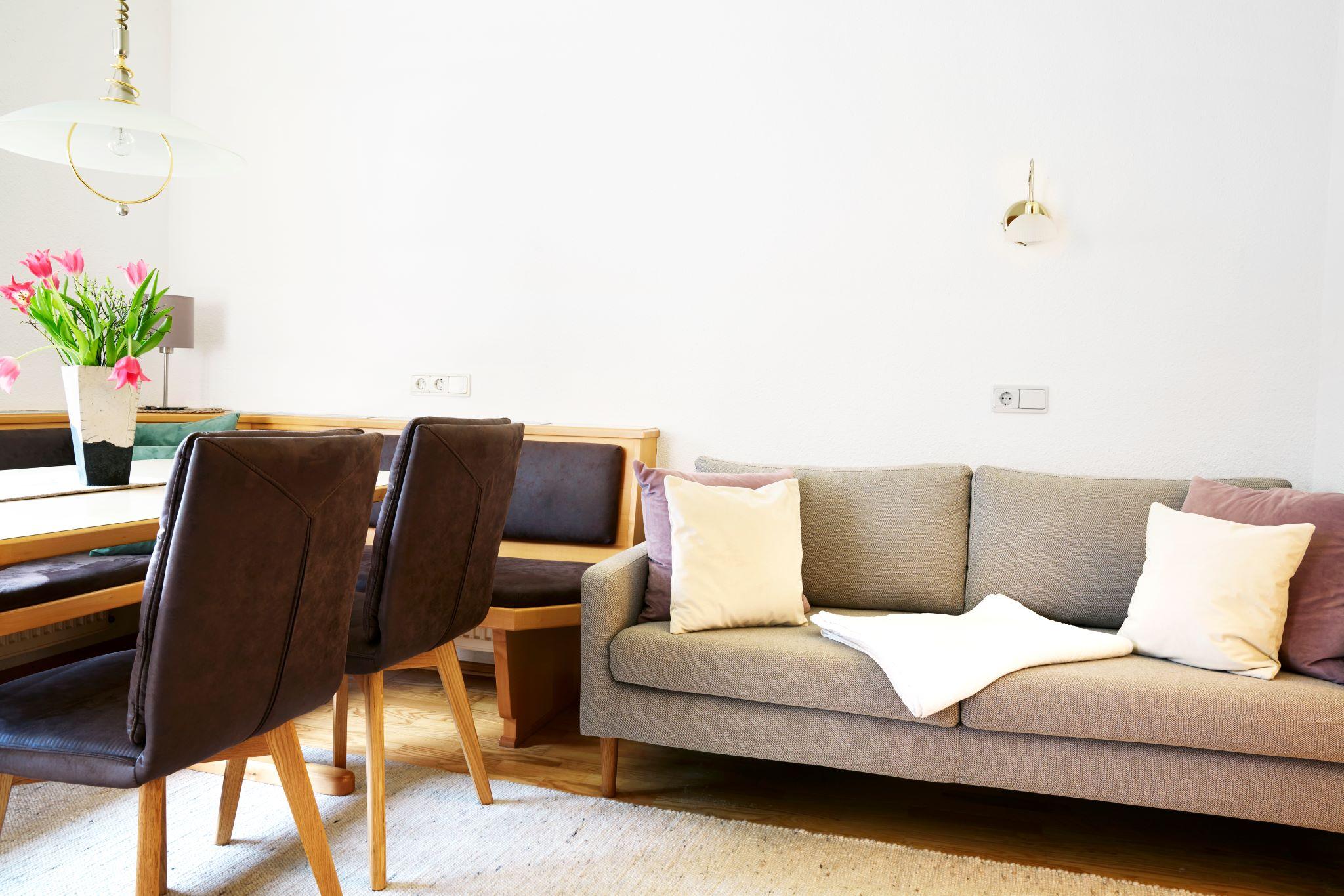 Unsere gemütliche Ferienwohnung mit ca. 60m² befindet sich im Parterre und besteht aus: 1 Doppelzimmer; 1 Doppelzimmer mit Zustellbett (optional kann die 5. Person auch im Wohnzimmer nächtigen); 1 Wohnzimmer mit Eckbank, Schlafsofa, Sat-TV, separater Kochnische ausgestattet mit Spülmaschen, Kühlschrank, Backofen, Kaffeemaschine uvm; 1 Badezimmer mit Dusche und WC; Vorraum;  schöne Waldrandlage. Vom Wohnzimmer aus gelangen Sie direkt auf die sonnig Terrasse und in den Garten.