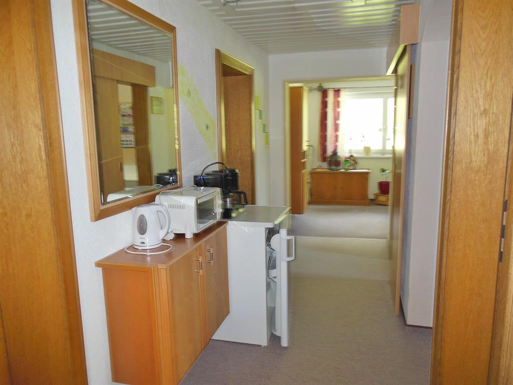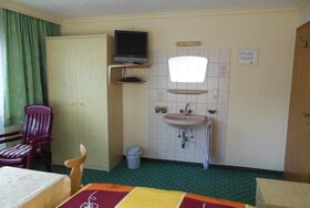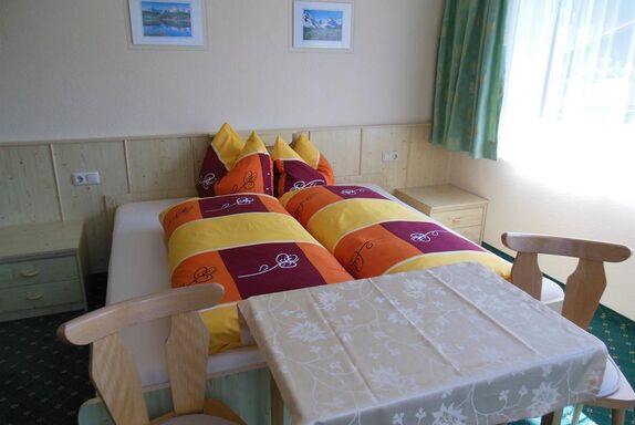 Unser komfortables Doppelzimmer verfügt über ein Waschbecken, Flat-Sat-TV und einen Balkon im Zimmer. Das Badezimmer mit Dusche und WC, sowie die Gästeküche mit Backofen, Kaffeemaschine, Wasserkocher und Kühlschrank sind auf der Etage. Wir servieren Ihnen am Morgen ein reichhaltiges Frühstück für einen aktiven Start in Ihren Urlaubstag.