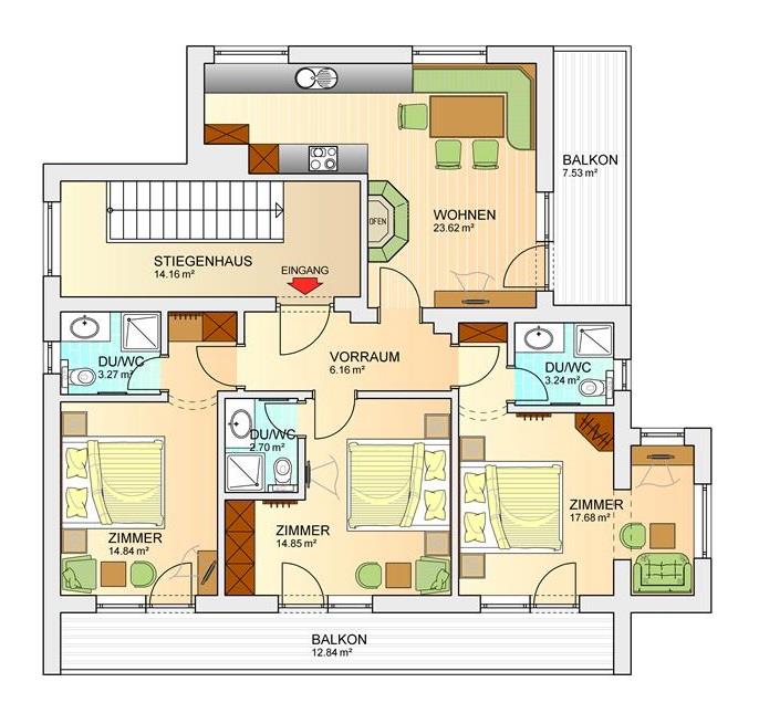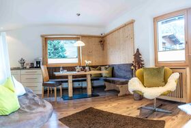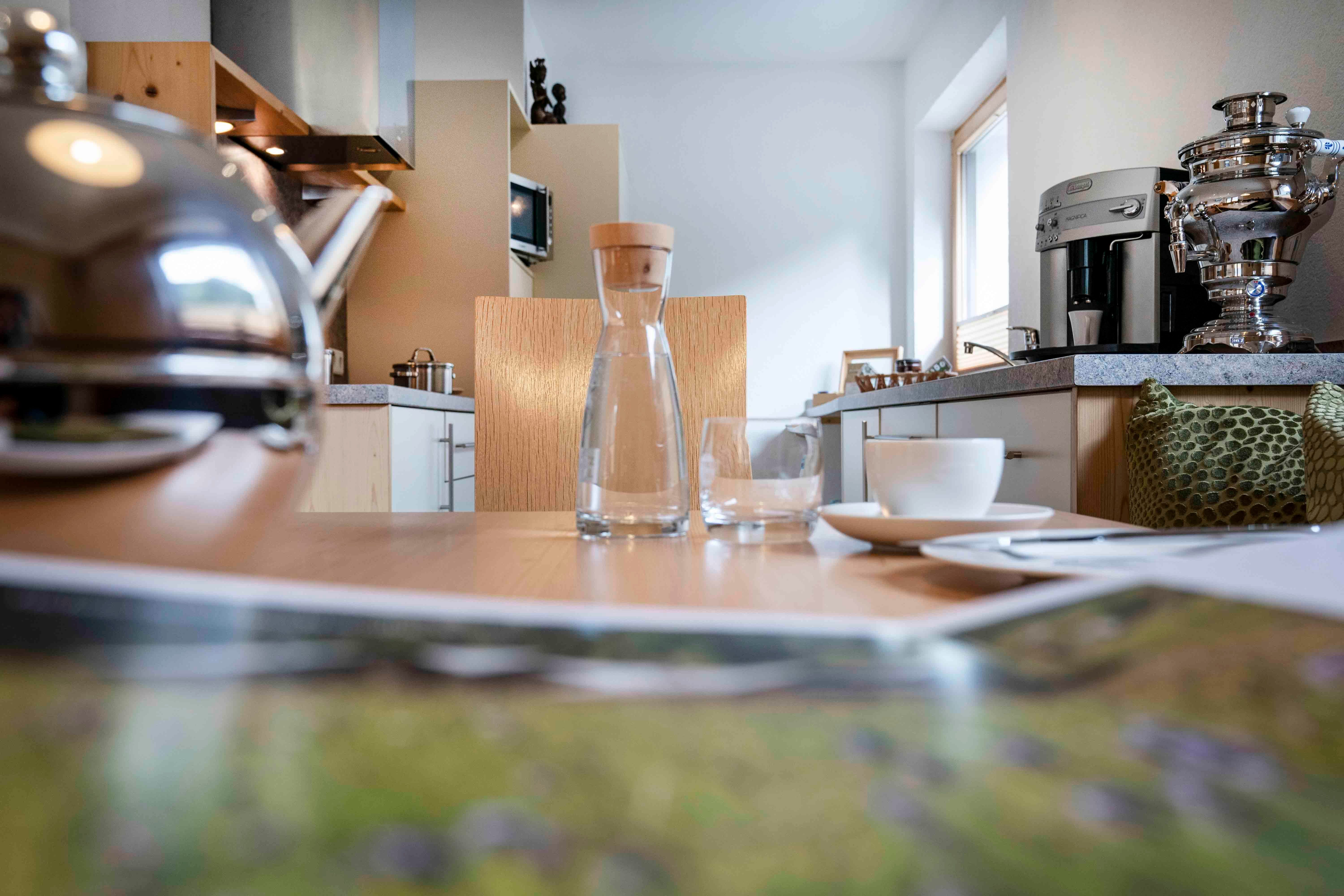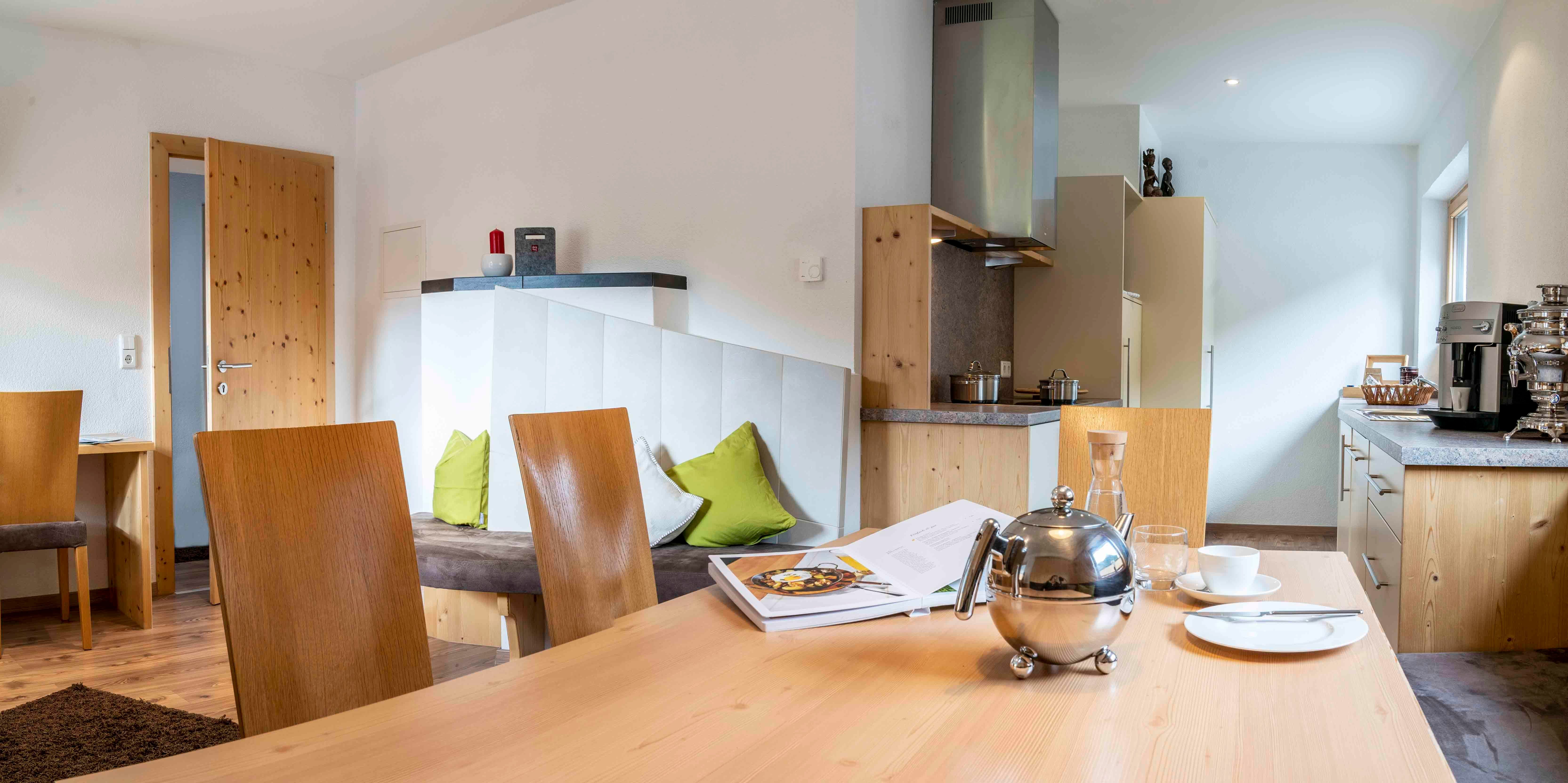 Modernes Appartement mit bis zu 3 Doppelzimmern jeweils mit Dusche/WC, Flat-TV, gemütliche voll ausgestattete Wohnküche mit Kachelofen, Mikrowelle, De Longhi Kaffeemaschine, Herd, Kühlschrank, TV. Freies WIFI/Internetanschluss, Balkon. ca. 80 m².