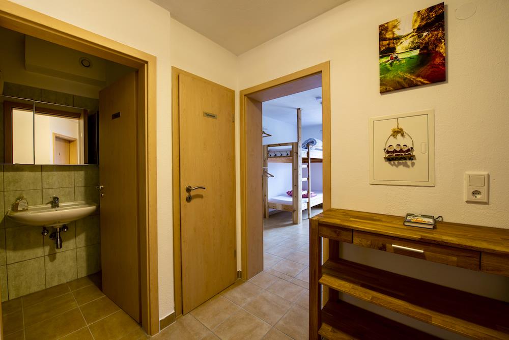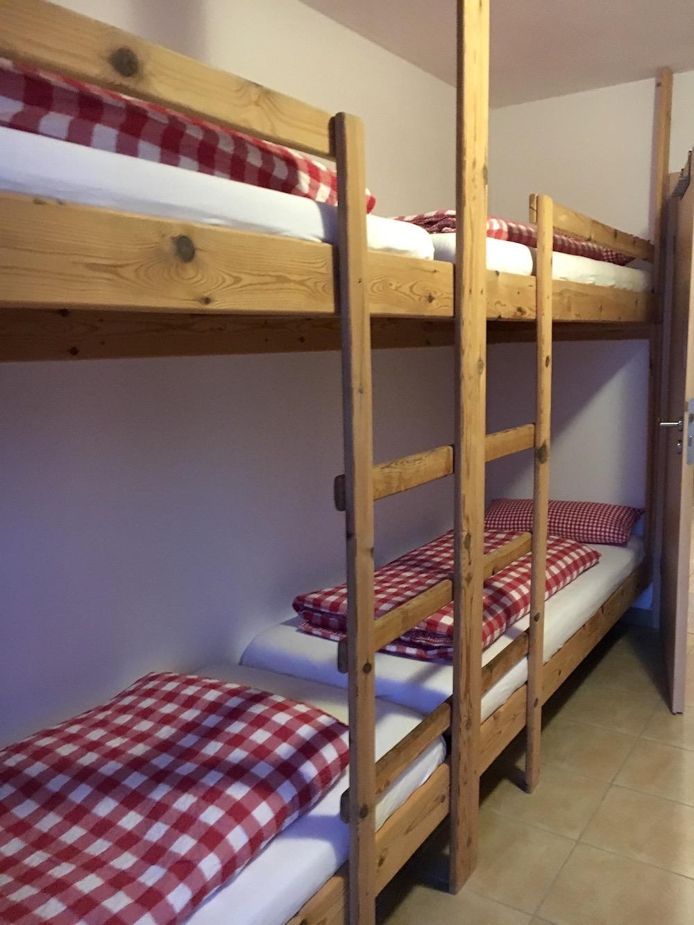 Das Zimmer ist ausgestattet mit: 3 x Stockbetten, Balkon, 1 Dusche und WC auf der Etage, welche sie sich mit anderen Gästen teilen. Die Gemeinschaftsküche ist bestens ausgestattet mit Kaffeemaschine, Backofen, Kühlschrank, kleine Annehmlichkeiten wie Öl, Salz und Pfeffer sind vorhanden. Der Gemeinschaftsraum und die Grillecke stehen allen unseren Hausgästen zur Verfügung. Nach der Benützung ist die Küche bzw. Grillplatz aufgeräumt und sauber zu hinterlassen.