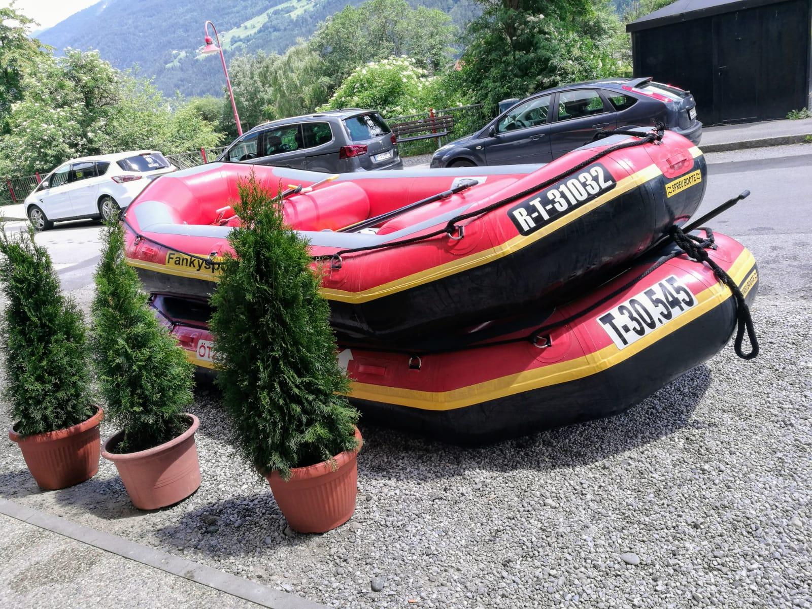 Vor unserer Haustüre befindet sich der Inn mit der Ausstiegstelle für die beliebten und bekannten Kajak- und Rafting-Strecken