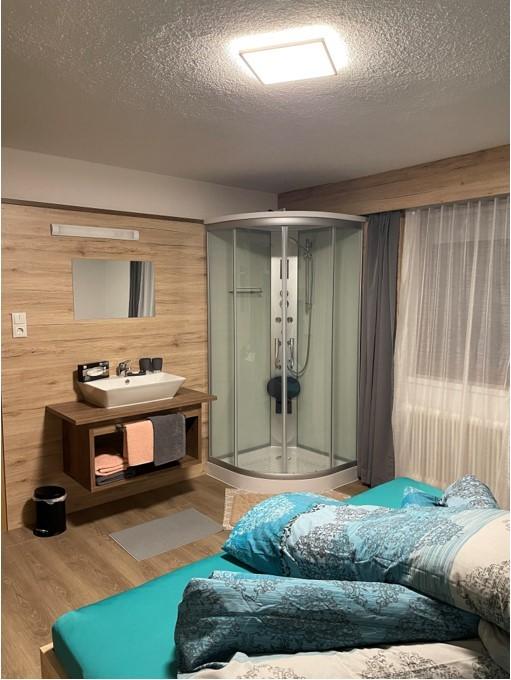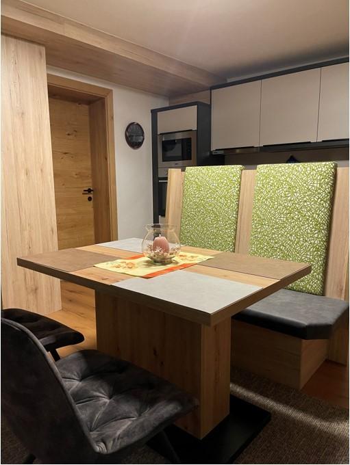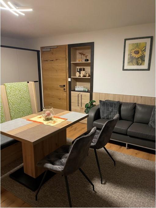 Das neue und komfortable Appartement mit ca. 65 m² befindet sich im 1. Stock und besteht aus: 2 Doppelschlafzimmern mit jeweils Dusche und Waschbecken; 1 separates WC; 1 geräumige Wohnküche mit komplett ausgestatteter Küchenzeile (Spülmaschine, Cerankochfeld, Backrohr, Kühlschrank/Gefrierfach, Kaffeemaschine, Mikrowelle uvm.), Essbereich, gemütlicher Wohnbereich mit Couch und Sat-TV; möblierter Balkon.