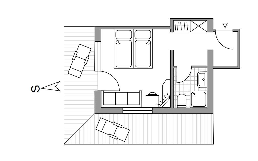 Zimmer Hemerkogl bestehend aus: Doppelbettzimmer, Vollholzmöbel aus Zirbenholz, Größe: ca. 25 m², Badezimmer mit DU/WC und Föhn, SAT-TV mit Teletext und Radio, Safe, Sofa, Parkettboden, Südbalkon, auf der 1. Etage, Benützung der Panoramasauna inklusive, Frühstücksbuffet und Gästeküche zur Mitbenützung in Joggls Stube