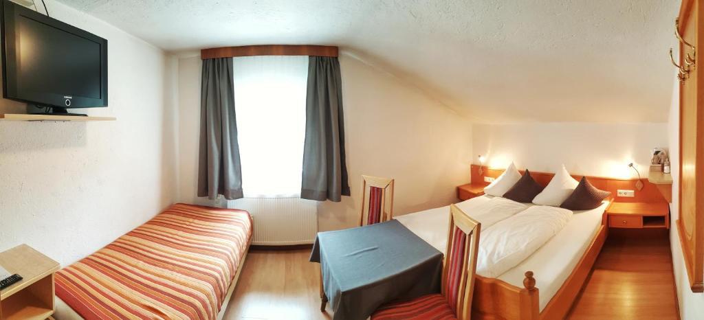 Einfaches Zimmer in ruhiger Lage mit herrlicher Sicht auf die Alpen. Mit TV und Dusche/WC. Ca. 20 m².