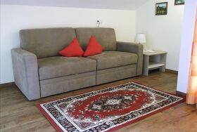 Die neue gemütliche Ferienwohnung 70qm mit 4 Edelweiss ausgezeichnet, für 4 Personen, ist im Obergeschoss, hat eine große Wohnküche sehr gut ausgestattet  E-Herd mit Backrohr, Geschirrspülmaschine, Kaffeemaschine, Wasserkocher und ausreichend Geschirr,  2 Schlafzimmer jedes mit eigenem Bad und Wc, Balkon nach Süden,  natürlich Sat-Tv und gratis W-lan,  Föhn, Wäsche, Handtücher, Geschirrspülmittel, Tabs, Seife und Spültuch. Selbstverständlich ist auch ein Parkplatz beim Haus.