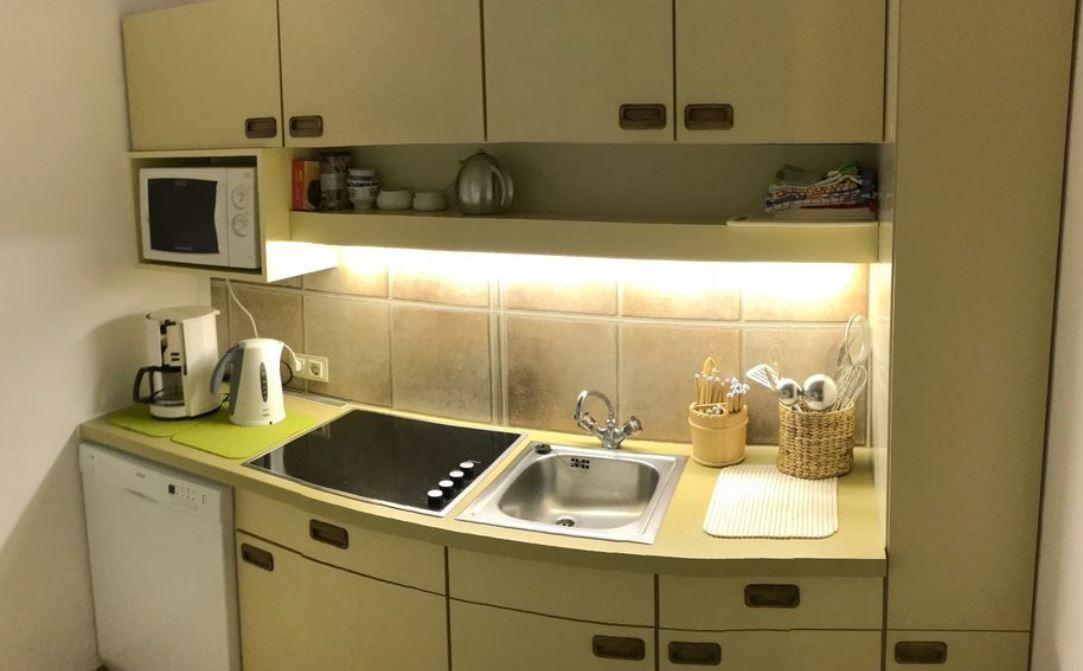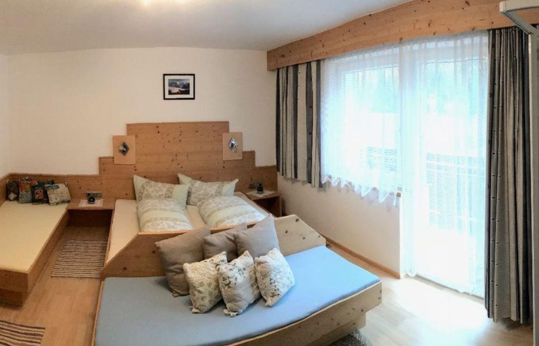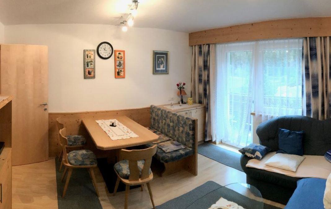 Unser Appartement Schrankogelblick verfügt über 1 Doppelzimmer mit Dusche und 1 Mehrbettzimmer mit Dusche, WC sowie eine Küche und ein Wohnzimmer mit Essbereich, TV und Balkon.