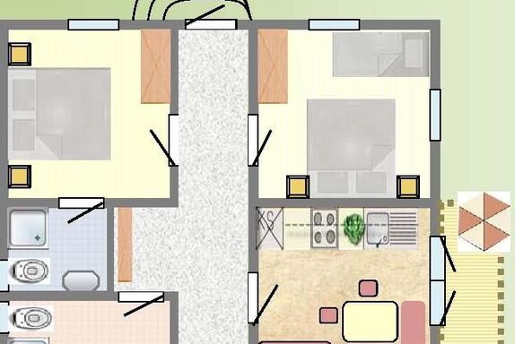 Ins Zentrum sind es zu Fuß ca. 5 Minuten. Vor dem Haus befindet sich eine große Liegewiese mit Grillplatz.