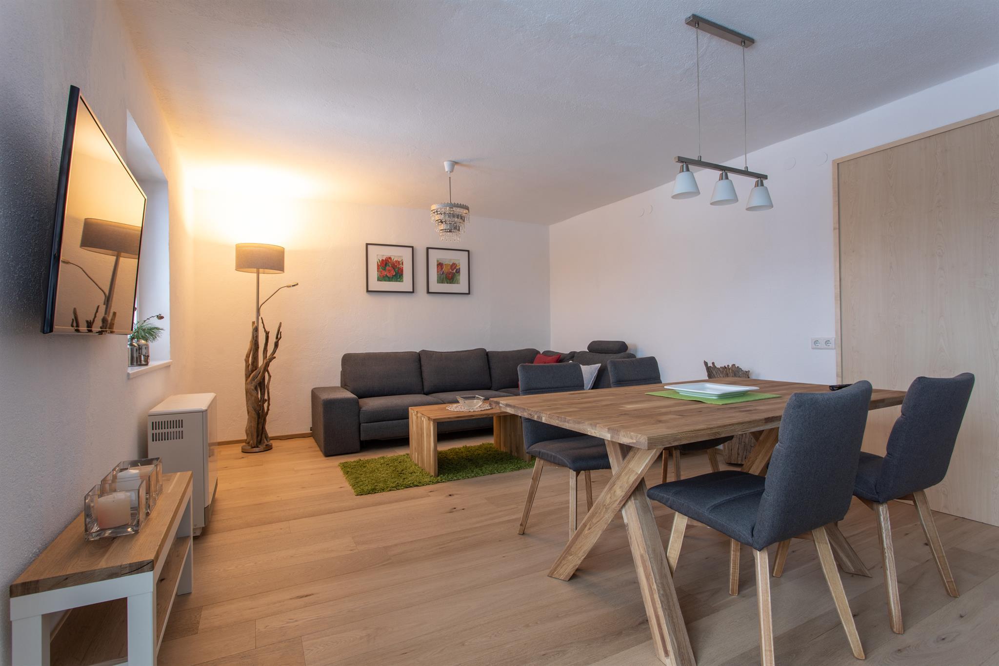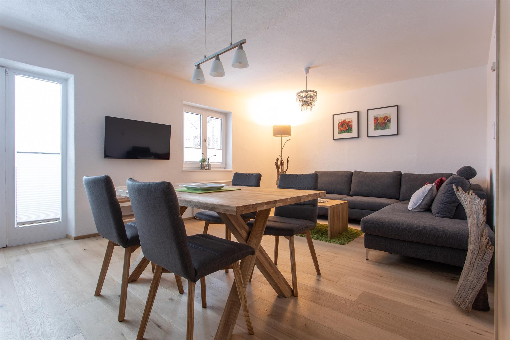 Die Ferienwohnung Alpenrose ist eine helle, geräumige Wohnung mit ca. 80 m2. Sie besteht aus: 1 Dreibettzimmer mit Dusche und WC; 1 Doppelbettzimmer mit Dusche und WC; vollausgestattete Wohnküche mit Herd, Backrohr, Kühlschrank, Geschirrspüler, Kaffeemaschine und großem Essplatz sowie Wohnlandschaft und Sat-TV. Bettwäsche, Handtücher, Geschirrtücher werden zur Verfügung gestellt.
