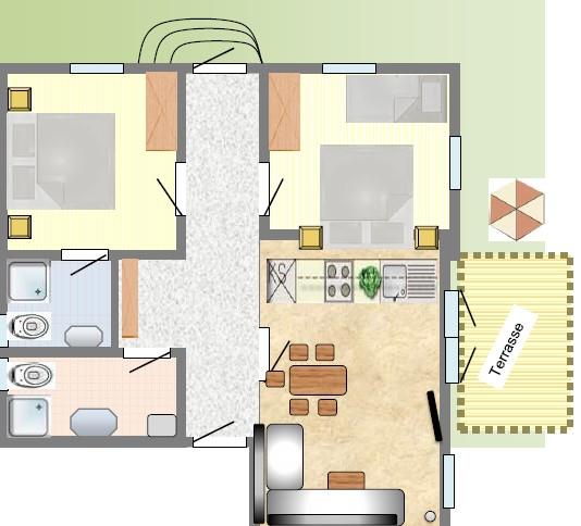 Die Ferienwohnung Alpenrose ist für 2 bis 5 Personen geeignet. Wobei die Wohnungen getrennte Schafzimmer aufweisen.
