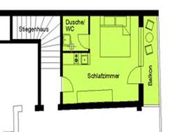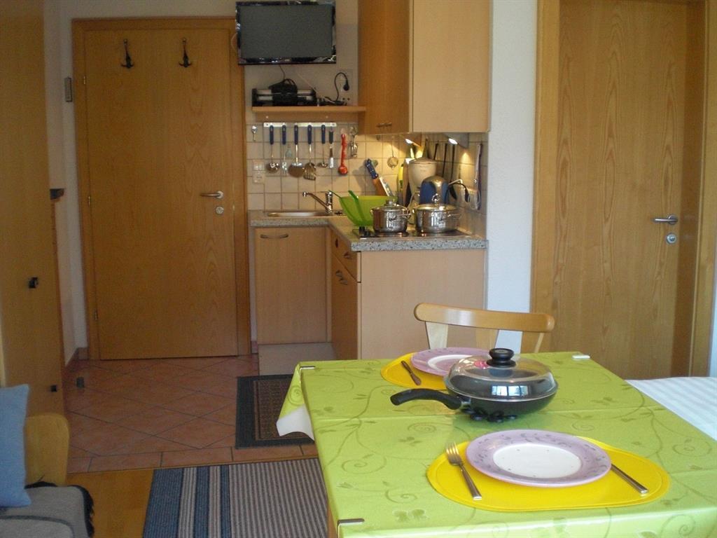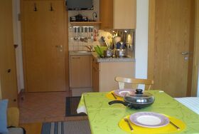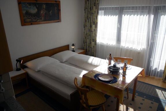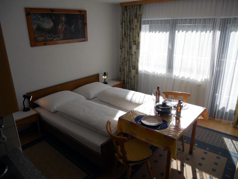 Freundliches 1-Raum Appartement mit ca. 22m² im 1.Stock für 2 Personen besteht aus: Wohnschlafraum mit Doppelbett und Essbereich, Kochnische mit Elektroherd, Kühlschrank, Geschirr, Mikrowelle mit Backfunktion, Toaster, Kaffeemaschine, Plattengriller, Wasserkocher, Badezimmer mit Dusche/WC, Sat-TV, Radio und Balkon mit Markise und Sitzbereich. Nutzung einer Waschmaschine möglich.