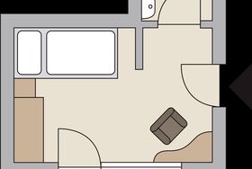 15 m², Einzelzimmer mit Badezimmer (Dusche/WC), Telefon, Sat-TV, Radio, gratis Wlan Verbindung,