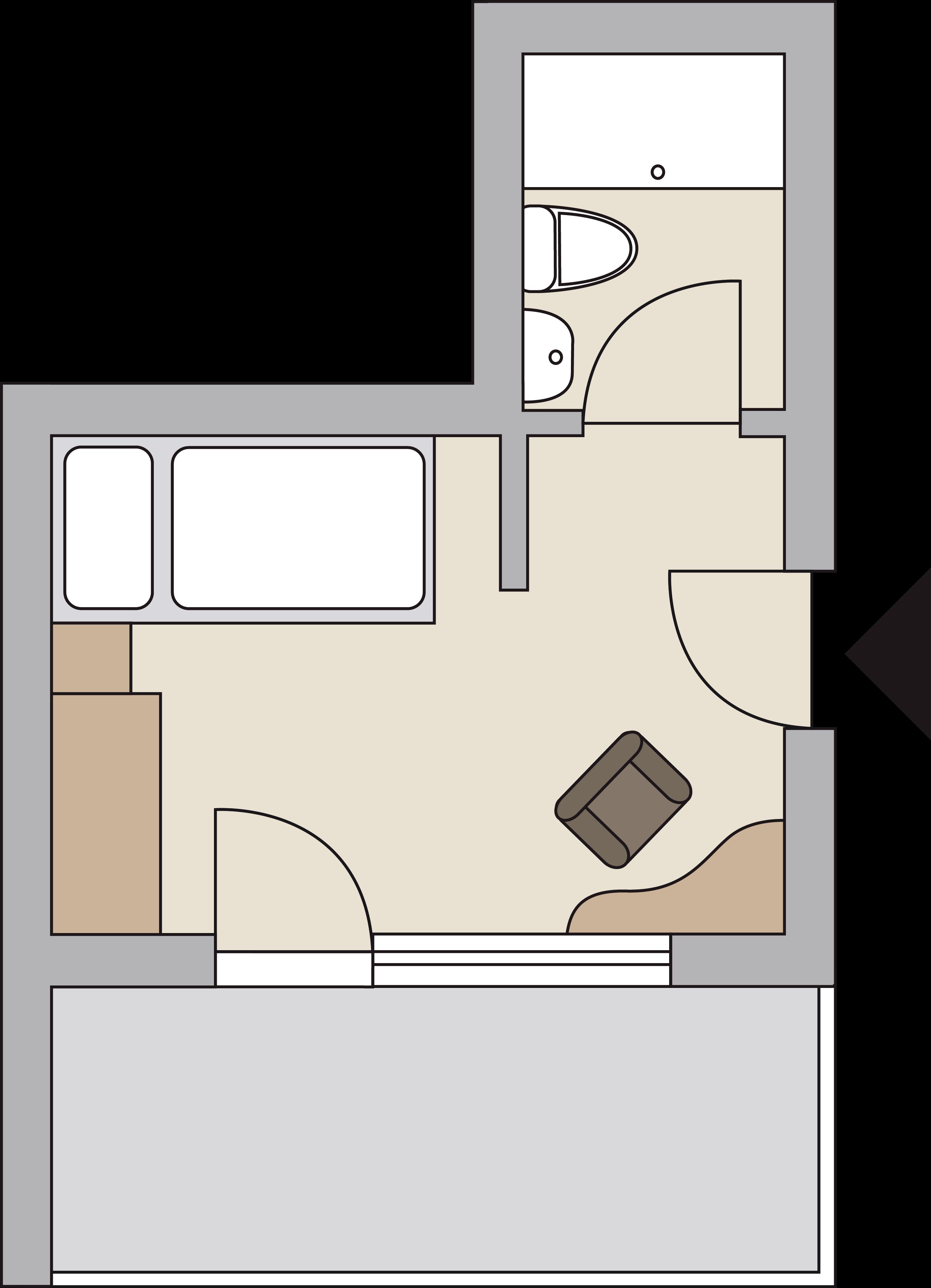15 m², Einzelzimmer mit Badezimmer (Dusche/WC), Telefon, Sat-TV, Radio, gratis Wlan Verbindung,