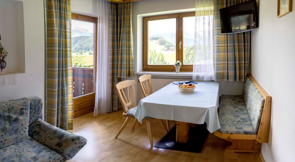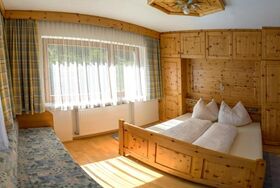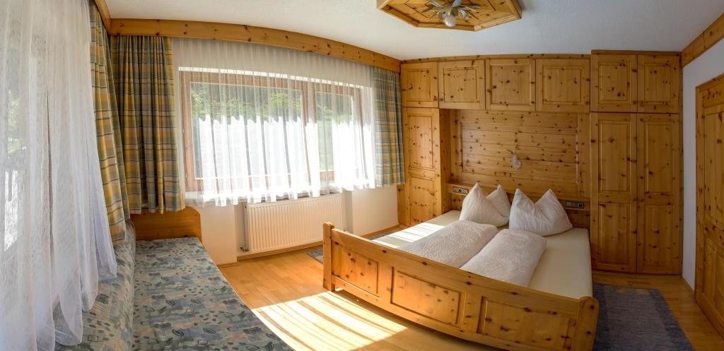 Appartement Morgensonne besteht aus: Vollholzmöbel aus Zirbenholz, Größe: ca. 65 m², 2 Doppelzimmer mit DU/WC, Diele mit Kochnische, Wohnzimmer mit Essecke, SAT-TV und Radio, Safe, Sofa (ausziehbar für 2 Kinder), Badezimmer mit Dusche/WC und Föhn, Parkettboden, Balkon auf der 1. Etage, Benützung der Panoramasauna inklusive, Aufenthaltsraum und Gästeküche zur Mitbenützung in Joggls Stube