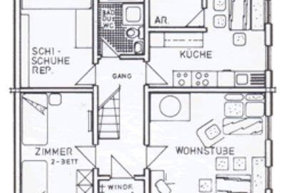 Unser Ferienhaus besteht aus Wohnzimmer mit Kachelofen, Flat-TV, Telefon; einer Küche mit Geschirrspülmaschine uvm.; 2 Badezimmer mit Dusche und/oder Badewanne und WC; Ski- und Schuhraum; zwei 3-Bettzimmer; ein 2-Bettzimmer und zwei Doppelzimmer. Das Ferienhaus bietet bequem Platz für bis zu 12 Personen (Parterre und 1. OG). Größe: ca. 180 m².