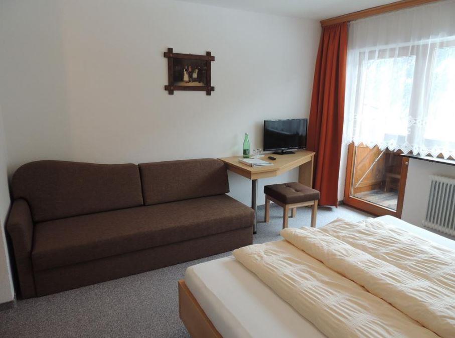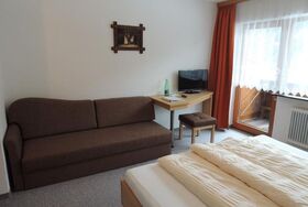 Genießen Sie vom Südbalkon unseres neu eingerichteten Doppelzimmers mit ca. 25 m² den herrlichen Blick auf unsere Bergwelt. Das Doppelzimmer ist mit (Schlaf-)Sofa oder Fernsehsessel, Schreibtisch, LCD-Flachbildfernseher eingerichtet und verfügt über ein Badezimmer mit DU/WC und Haarföhn.
