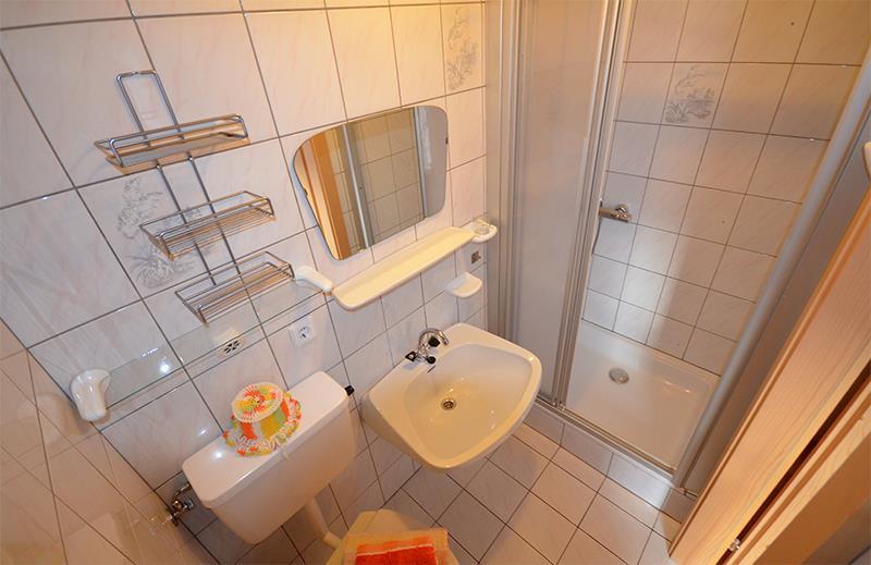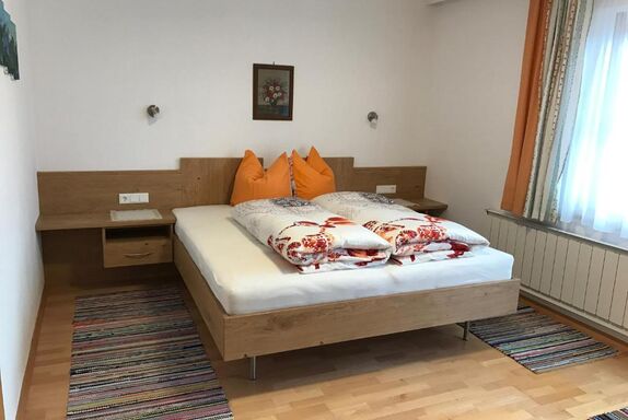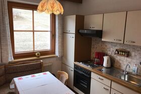 38m² Appartement im 1.Obergeschoss:1 Schlafzimmer (1,80x2m Bett) mit Flat-Screen, kleines Badezimmer mit Dusche/WC, gut ausgestattete Wohnküche mit gemütlicher Eckbank und Esstisch, sonniger Balkon mit Bergpanorama