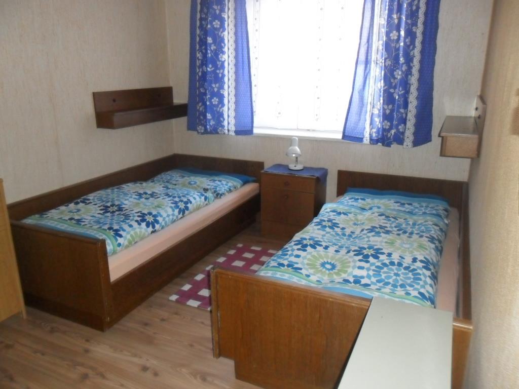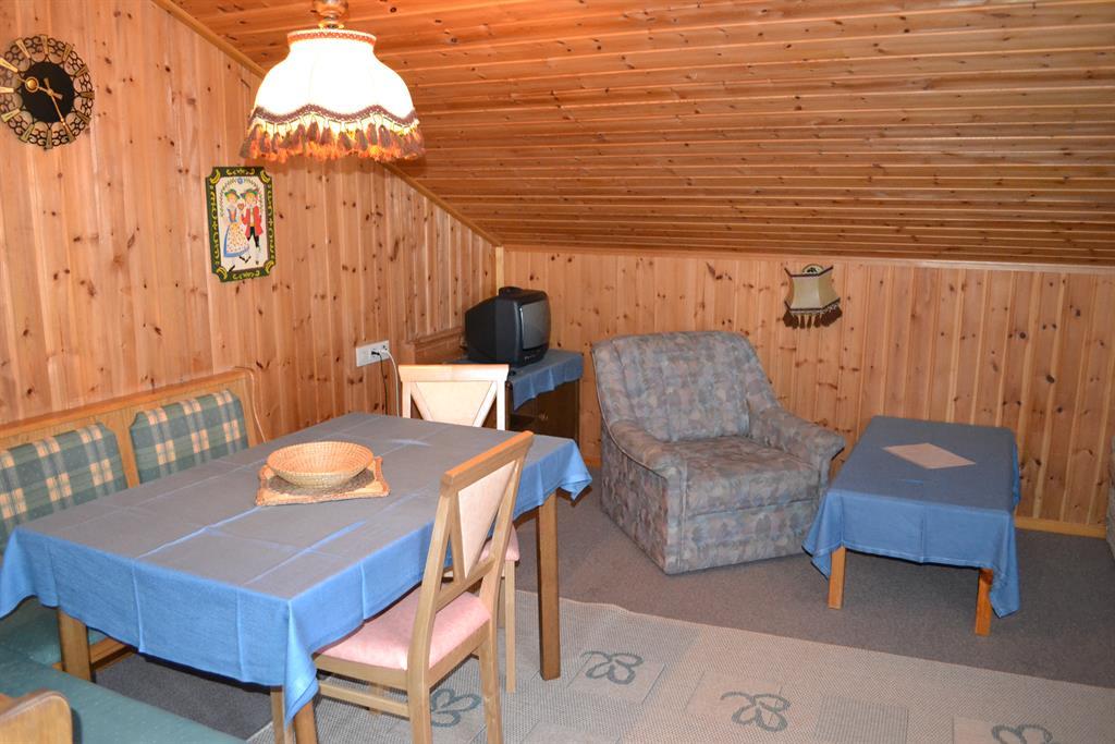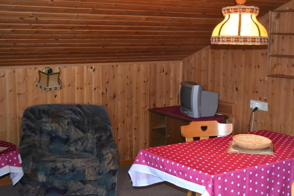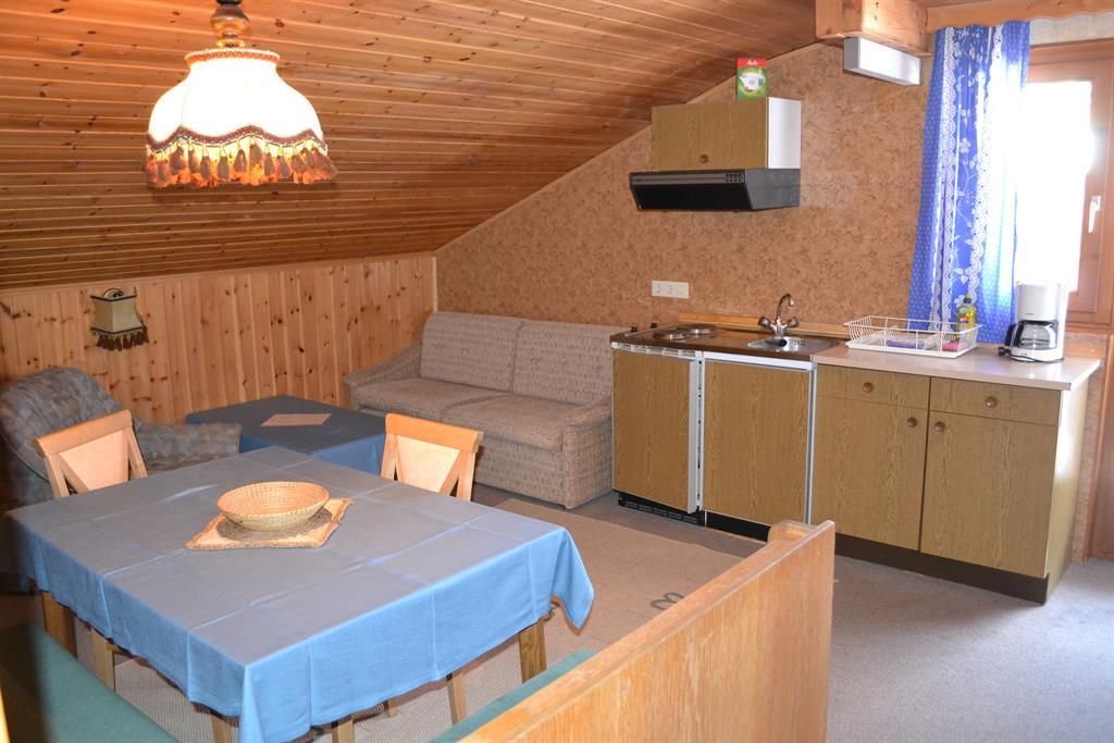 2-Zimmer-Wohnung, Dachgeschoß-Dachschräge, (ca.35m²) kleiner Flur, Schlafzimmer (Dachfenster) mit franz.Bett(1,40 m breit, Wohn/Schlafraum mit Doppelbettcouch, Essecke, Dusche/WC, Küchenzeile (2 Platten, Kaffeemaschine, Wasserkocher, Toaster, Sat-TV, Balkon, frischer Brötchenservice für Selbstversorger. Bettwäsche, Handtücher, Geschirrtücher vorhanden. Keine Haustiere erlaubt!