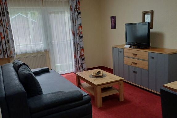 Gemütliches Appartement mit großem Wohnzimmer mit Sofa, Essecke, Flat-TV. Mit Schiebtüre abgetrennte neue Kochnische mit Backrohr, 4 Herdplatten, Spülmaschine, Wasserkocher, Mikrowelle mit Grillfunktion, Toaster, Kaffeemaschine sowie Balkon mit freier Aussicht auf die Berge. Ein Schlafzimmer mit Dusche/WC/Haarföhn und Kosmetikspiegel und ein weiteres Schlafzimmer befindet sich außerhalb des Appartements. Größe ca. 60 m².