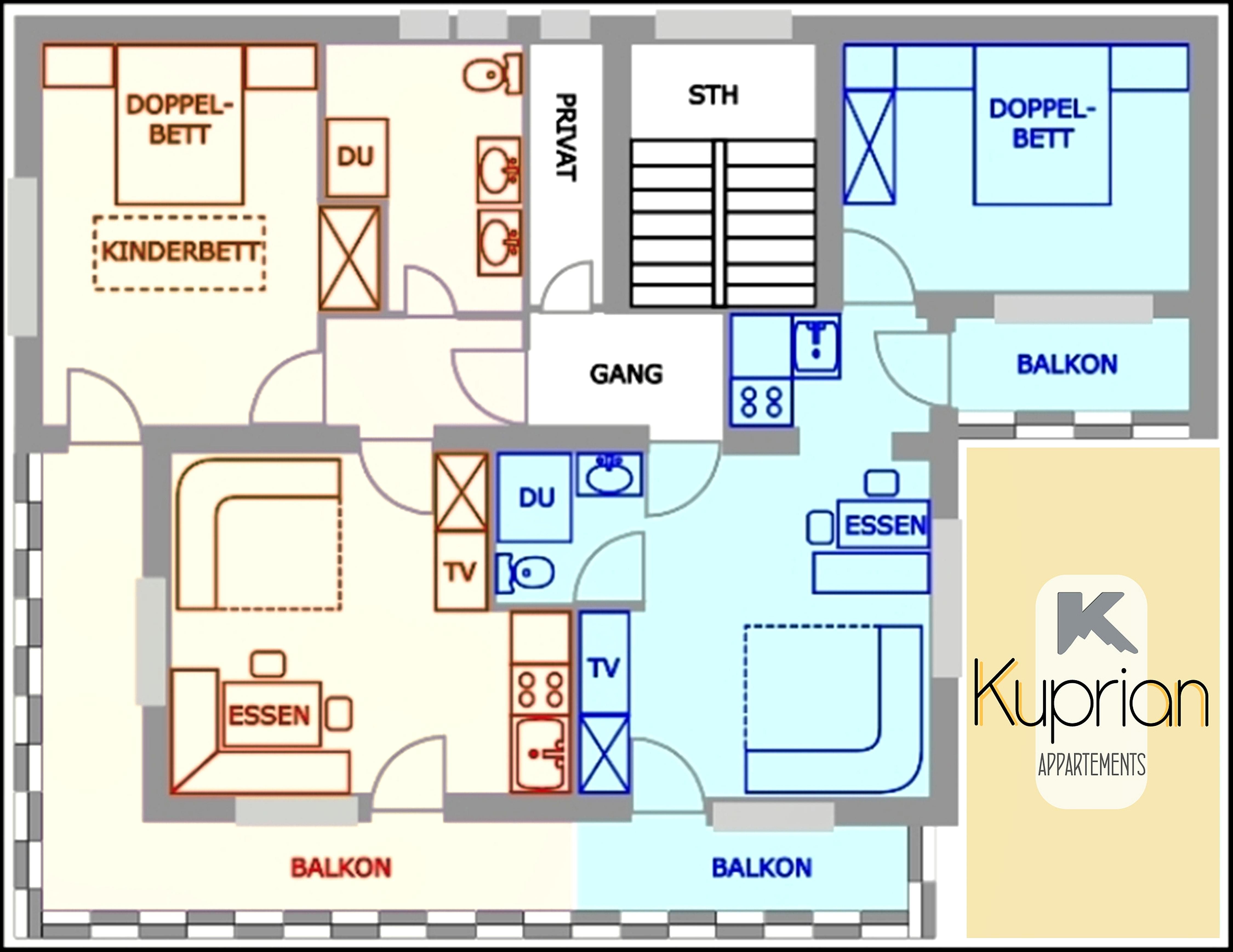Verdunkelungsplissee und 220cm Steppbetten, sowie ausgezeichnete Matratzen sorgen für angenehmen Schlaf, Wohnküche/Wohnraum sind großzügig ausgestattet und mit großem Südbalkon verbunden