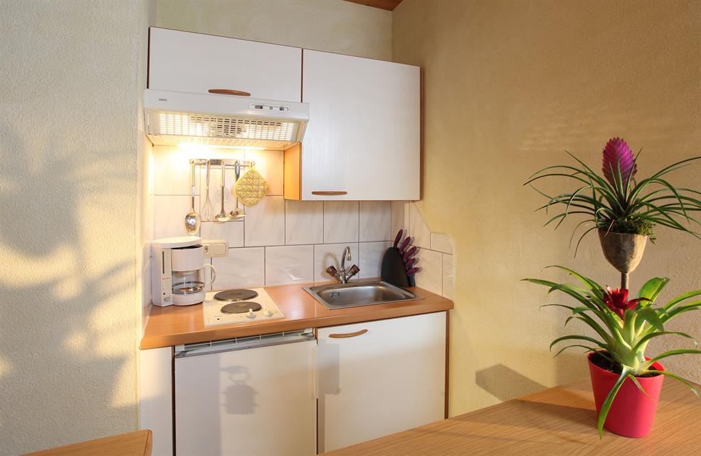Einraum-Appartement mit einem Doppelzimmer, Kochnische mit 2-Herdplatten, Kühlschrank, Kombi-Mikrowelle,... Balkon, Kabel-Flat-TV, Radio, W-Lan. Größe: ca. 40 m².
