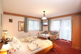 Schön eingerichtetes Dreibettzimmer mit Doppelbett und Einzelbett oder Schlafsofa mit Badezimmer (Dusche/WC), Balkon, Kabel-Flat-TV, W-Lan. Größe ca. 35 m²