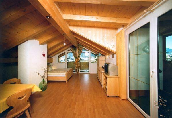 Gemütliches Dachappartement mit Holzausstattung, 2 Balkone, herrliche Aussicht, Küche, Wohn-Schlafraum, Flat TV, Radio, WLAN, Carport
