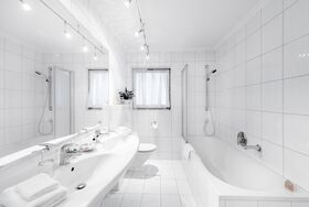 Einzelzimmer mit TV, WC und Badezimmer mit Dusche oder Badewanne.
