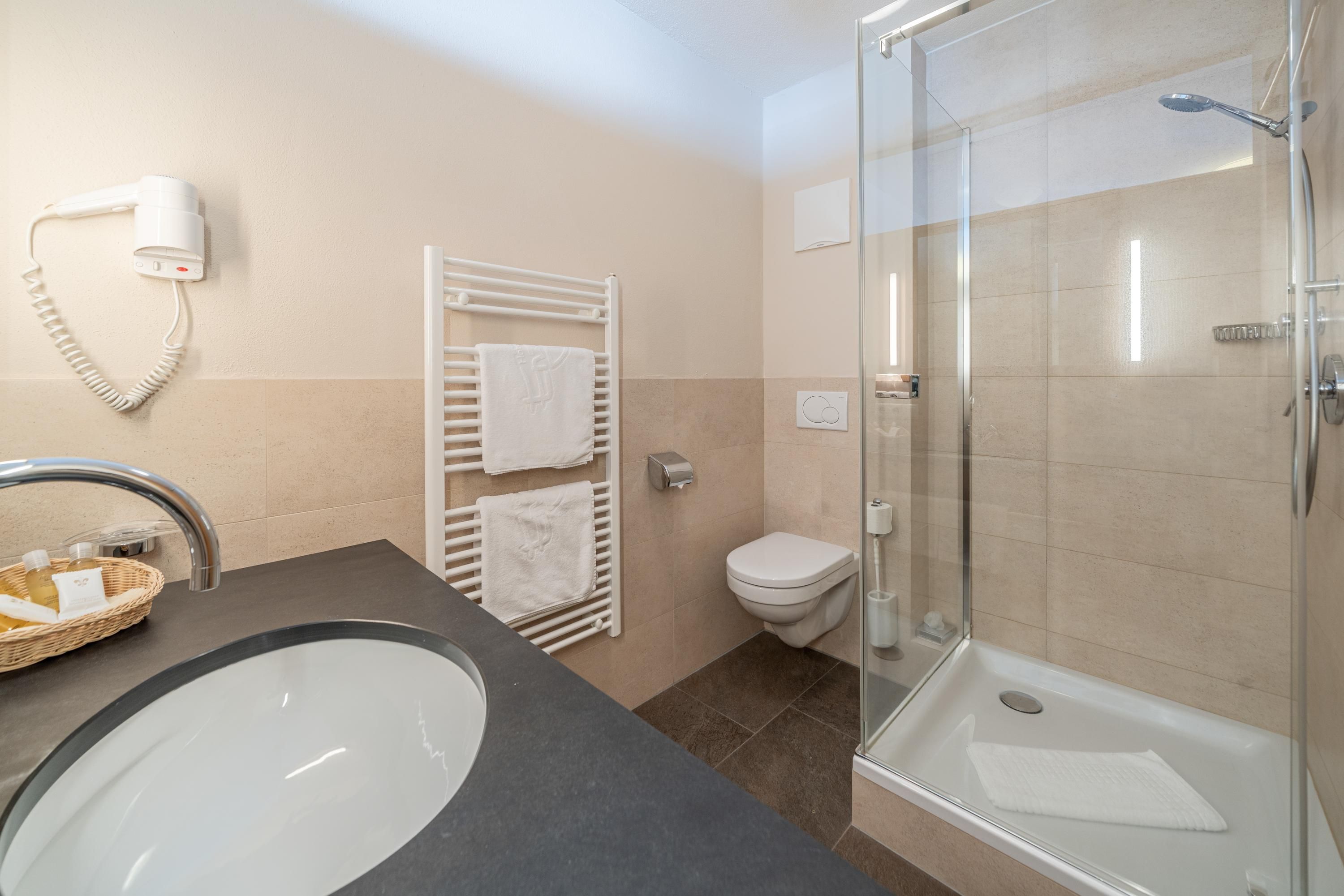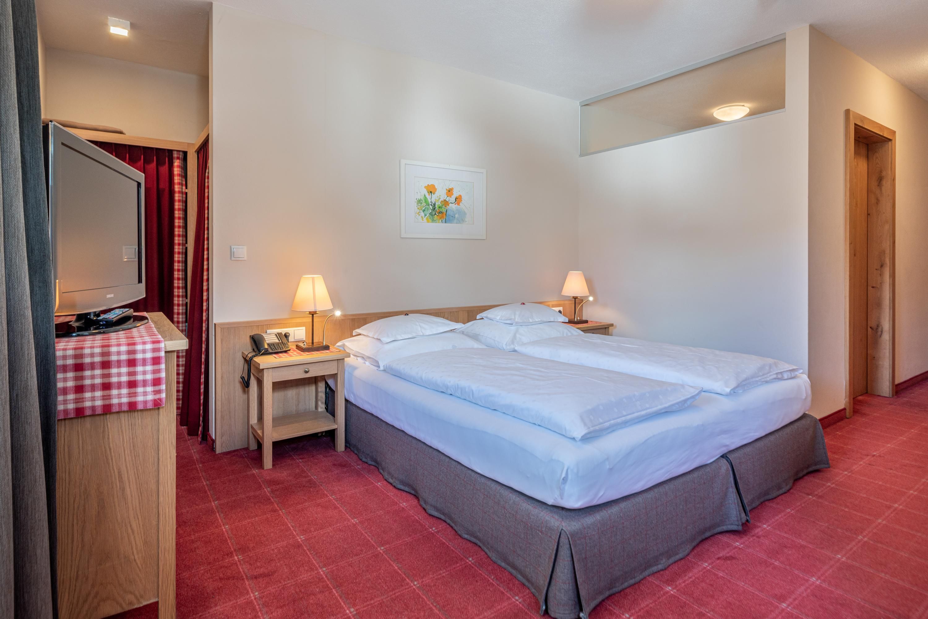 Einzelzimmer: ca. 20 m², großteils mit Balkon, Badezimmer mit Badewanne/WC oder Dusche/WC, Fön, Bademantel, Radio, Telefon, Kabel-TV, Safe.