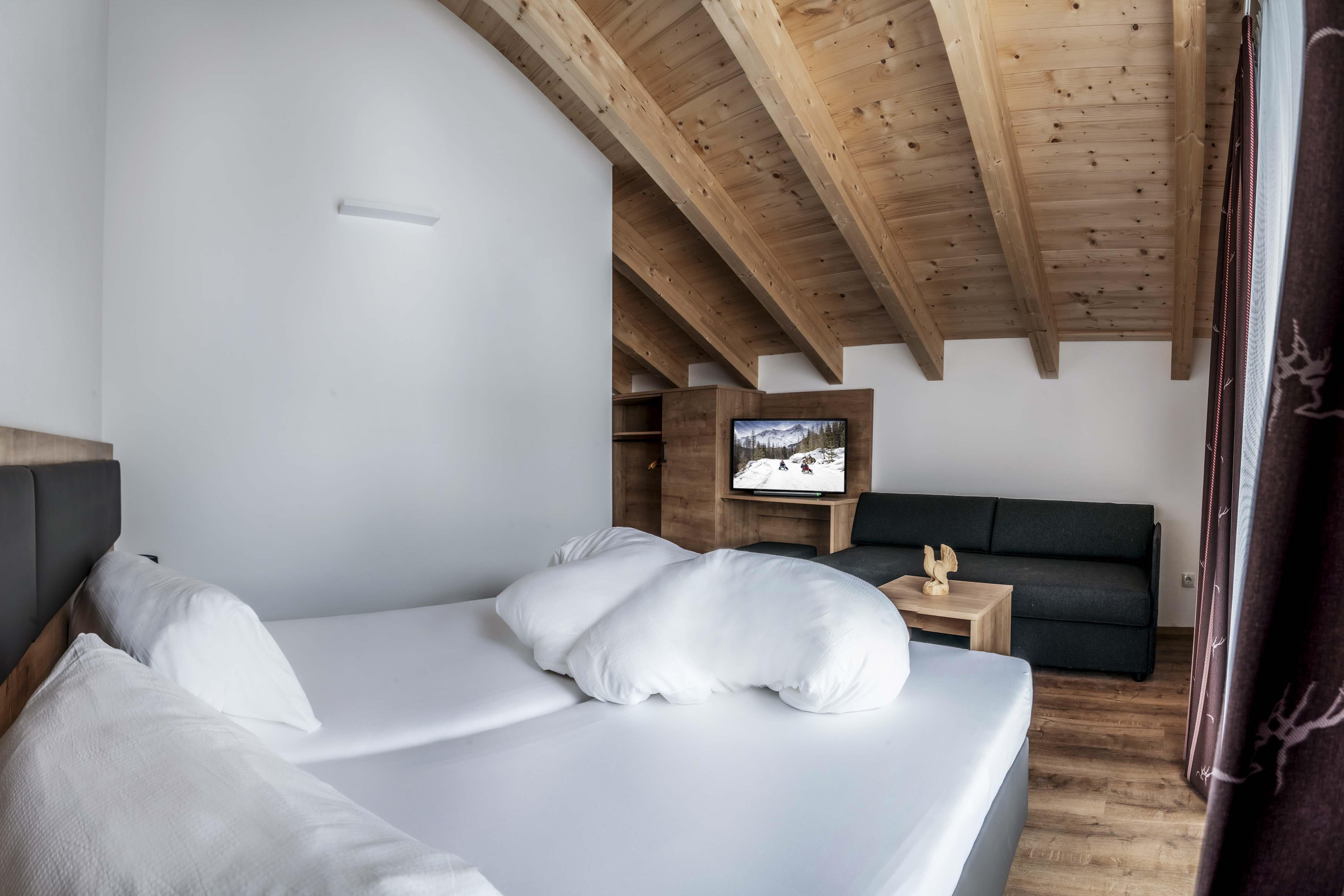 Im Tiroler Stil eingerichtetes Appartement mit 2 Schlafzimmern (eines davon mit einem Schlafsofa für eine weitere Person), jeweils mit Boxspringbetten & Flat-TV. Ein gemeinsames Badezimmer mit Dusche/WC und Haarföhn. Vollausgestattete Wohnküche mit gemütlichem ausziehbaren Sofa, Flat-TV, Geschirr, Mikrowelle, Kaffeemaschine, Geschirrspühlmaschine, Wasserkocher uvm., Balkon zur Strasse gerichtet. Größe ca. 52 m².