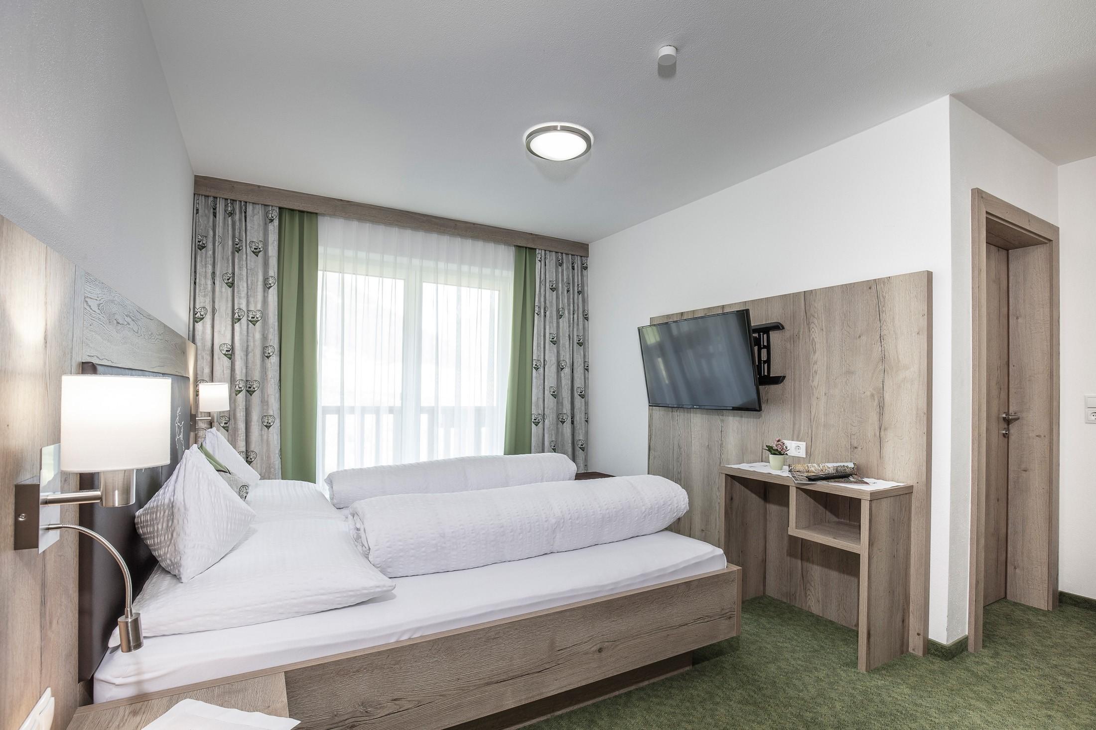 Unser Low-Price Zimmer verfügt über ein Doppelbett (nur über eine Seite zugänglich). Das Zimmer ist ausgestattet mit Dusche/WC, Telefon, Flat-TV, Tresor, Schreibtisch, W-LAN sowie einem Balkon. Ebenfalls inkludiert ist ein reichhaltiges Frühstücksbuffet mit unseren hofeigenen Produkten. Größe ca. 16 m².