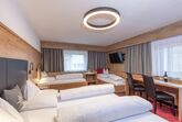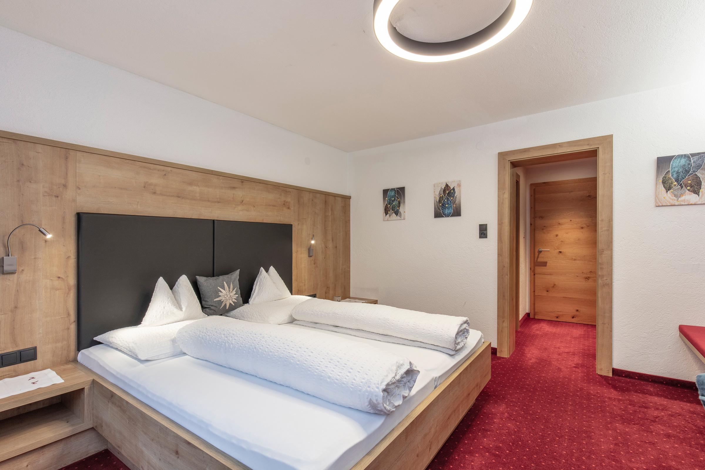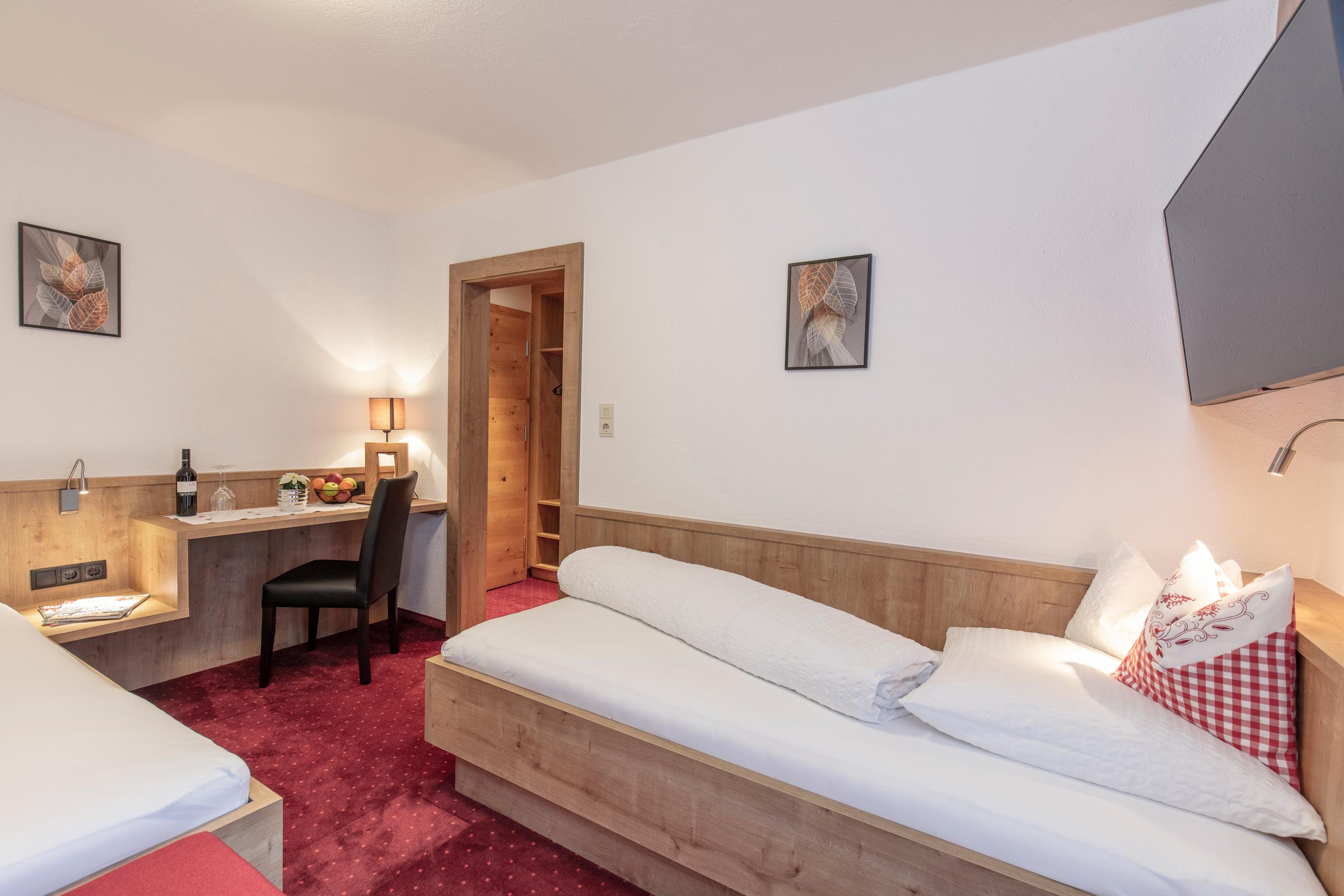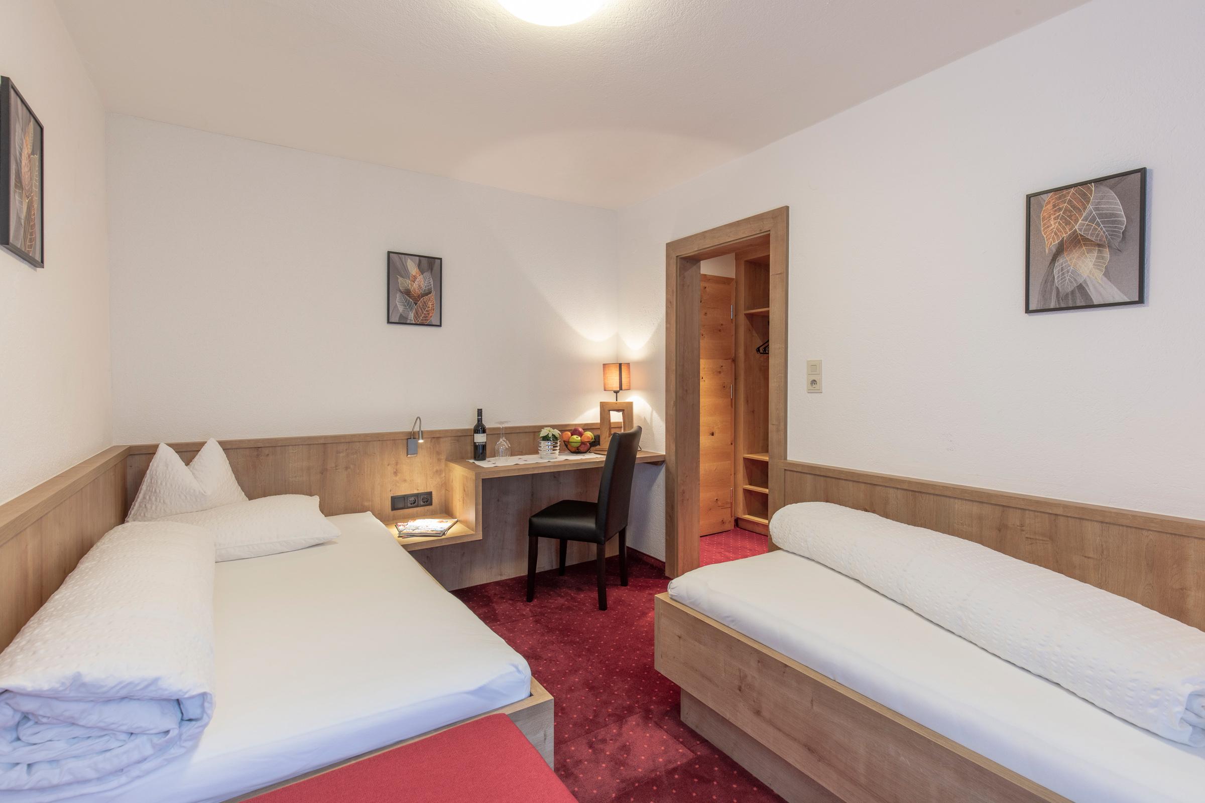 Großes Dreibettzimmer mit Zusatzbett, welches ideal für Familien geeignet ist. Das Zimmer ist ausgestattet mit Dusche/WC, Telefon, Flat-TV, Tresor, Schreibtisch, W-LAN sowie einem Balkon. Ein reichhaltiges Frühstücksbuffet mit unseren hofeigenen Produkten ist inkludiert. Größe ca. 26 m².