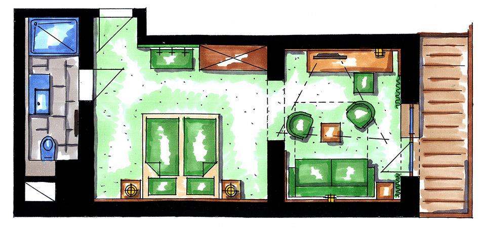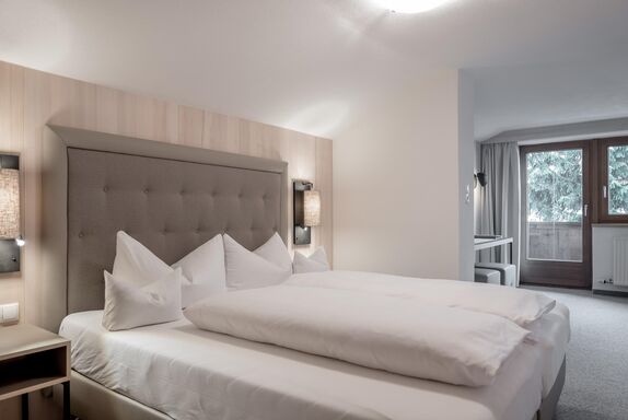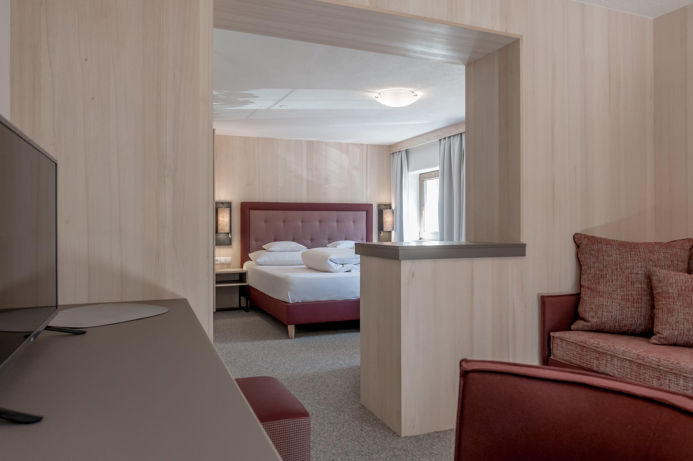 Die Familienzimmer sind ideal für 2-4 Personen, sehr großzügig und liebevoll eingerichtet und bieten einen atemberaubenden Ausblick auf die umliegende Bergwelt. Ausstattung: Schlafzimmer mit Doppelbett, optisch abgetrennter Wohnraum mit ausziehbarer Couch für 3. und 4. Person, Badezimmer mit Dusche/WC und Haarföhn, Flat-TV, Safe, Telefon, , WLAN, Balkon zur Südseite;