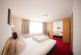 Geräumiges und großzügiges Appartement im Tiefparterre mit Garten und Terrasse. 2 Doppelzimmer mit Dusche und teilweise separates WC, separate Küche mit Kühlschrank, Herd, Backofen, Mikrowelle, Spülmaschine, Essecke, Wohnraum mit Sofa und Digital-Flat-TV. Größe: ca. 84 m².