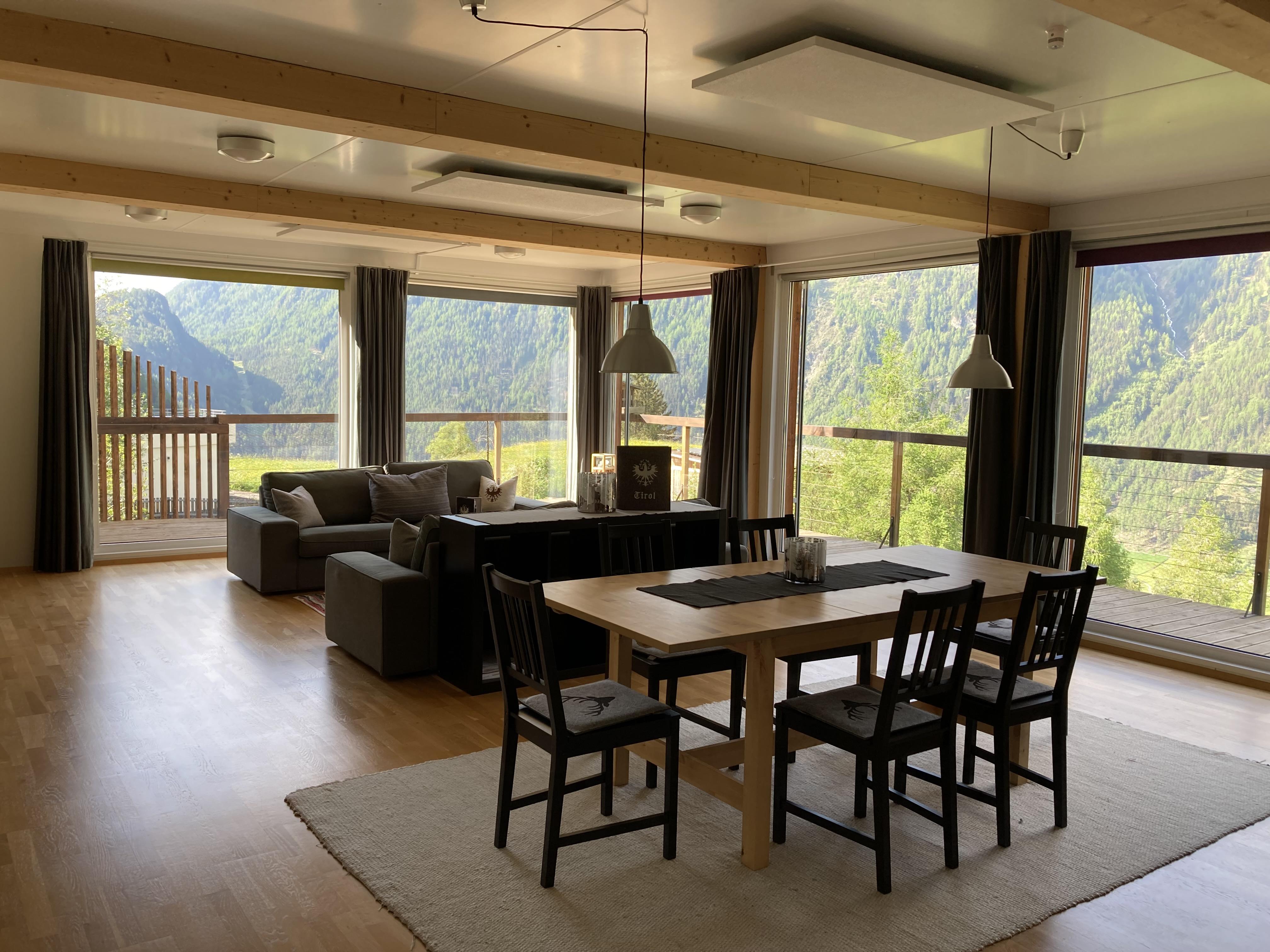 Unser Ferienhaus liegt ca. 200 m oberhalb des Ortskerns von Längenfeld im Weiler Burgstein auf einer Seehöhe von 1500 m. Das Containerhaus wurde aus 14 Modulcontainern erbaut und steht auf 4 Betonsäulen, hoch oben am Sonnenplateau. Die großen Fenster und die offene Bauweise mit dem umlaufenden Balkon eröffnen den Weitblick und man hat freie Sicht auf die umliegenden 3000er. Der kostenlose Skibus bringt Sie in die Top-Skigebiete des Ötztals. Sämtliche Wanderwege starten direkt vor der Haustüre und die Hängebrücke ist ca. 15 Gehminuten von unserem Ferienhaus entfernt.