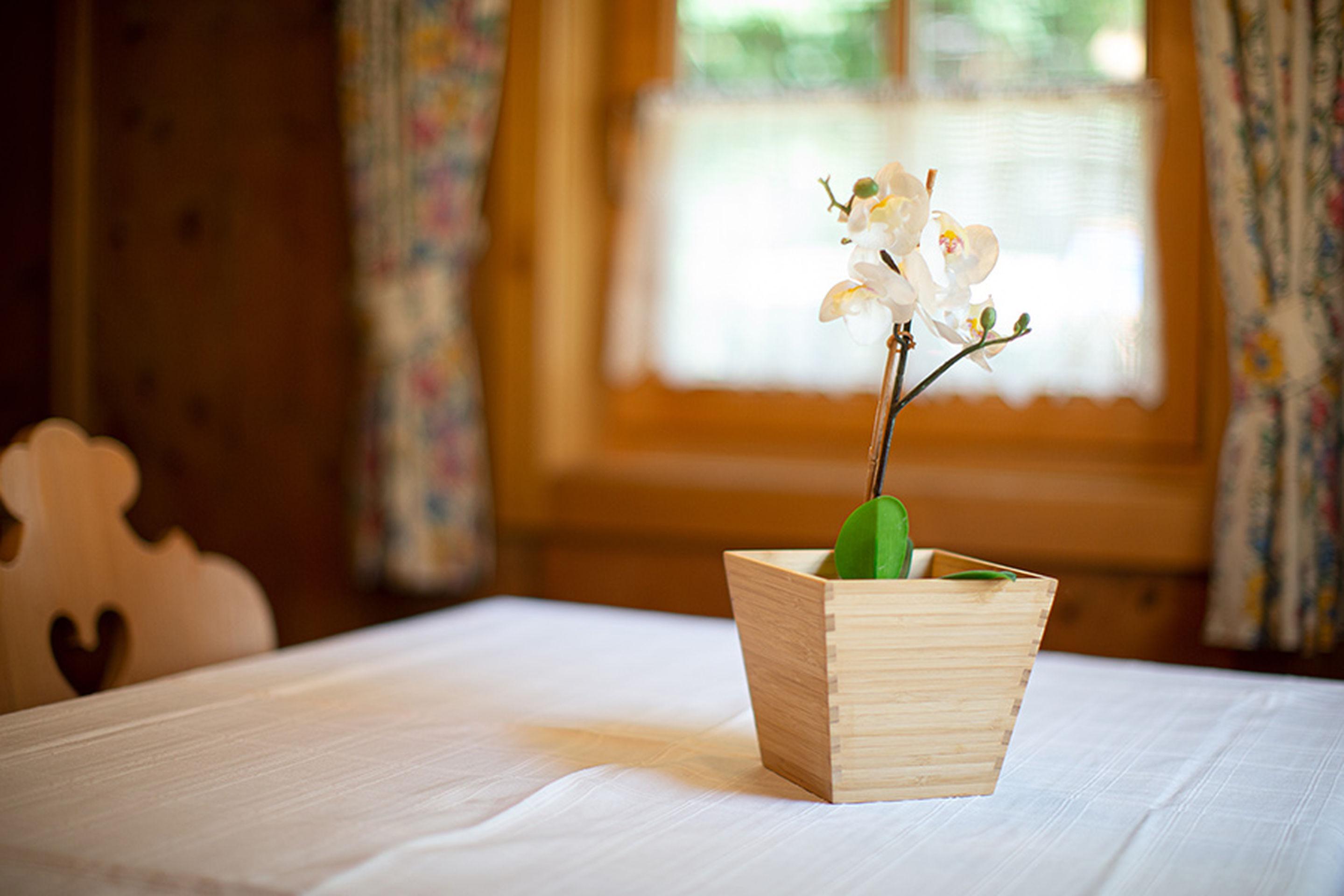 Bauernhaus über 2 Etagen mit ca. 130 m²: 2 Schlafzimmer mit Doppelbett; 2 Schlafzimmer mit Doppelbett und Einzelbett; 2 Badezimmer mit Dusche; 2 separate WC; Wohnstube, aus Zirbelholz getäfelte, mit Kachelofen und eingebauter Essecke; vollausgestattete Küche mit 4 Platten-Herd, Backofen, Mikrowelle, Geschirrspüler, Kühlschrank, Kaffeemaschine, komplette Geschirr- und Kochausstattung sowie Essbereich; möblierte Terrasse und kleiner Garten.