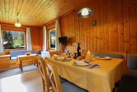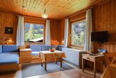 Eigenständiges Ferienhaus mit Selbstversorgung; Waldesrand; ebenerdige Terasse; nutzbare Freifläche