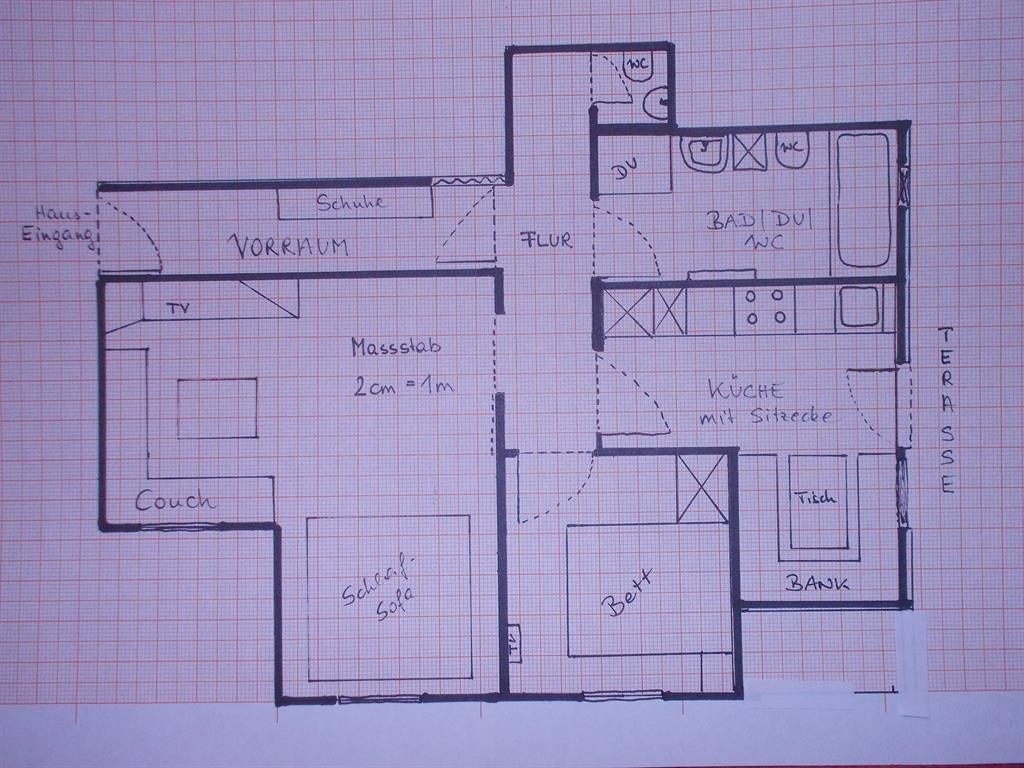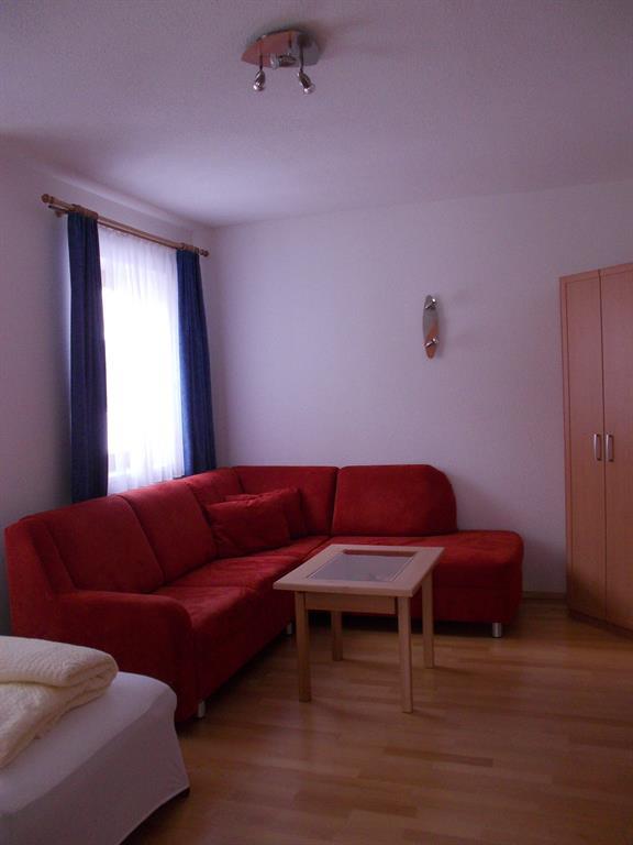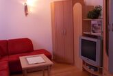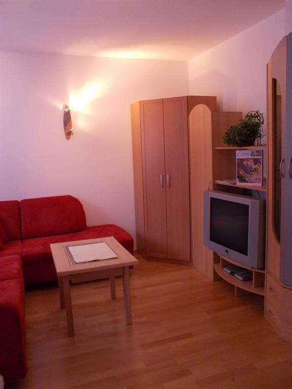 Wohnung für 2-5 Personen, geräumiger Wohn-Schlafraum mit einer Couch-Ecke zum Fernsehen und Schlafsofa (Schlafmöglichkeit für bis zu 3 Peronen), ein Doppelzimmer, 1 Badezimmer mit Badewanne/Dusche und WC, ein zusätzliches, separates WC,  vollausgestattete Küche mit Cerankochfeld, Kühlschrank, Kaffeemaschine, Mikrowelle, Backrohr uvm., 2 Flat-TVs, Radio, Sonnenterasse. Größe ca. 50 m²